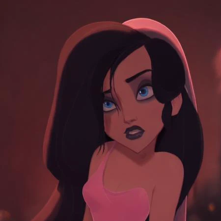 Cassandra, 1girl, solo, black hair, long hair, blue eyes, lipstick,