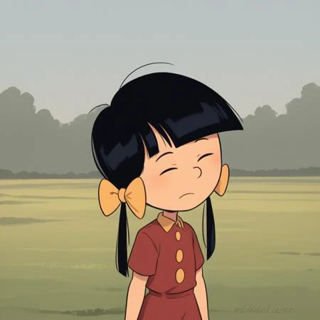 ChenYauping, 1girl, solo, black hair, twin tails, hair bow, closed eyes, collared red shirt, yellow Lapel, red skirt, short sleeves, white socks,