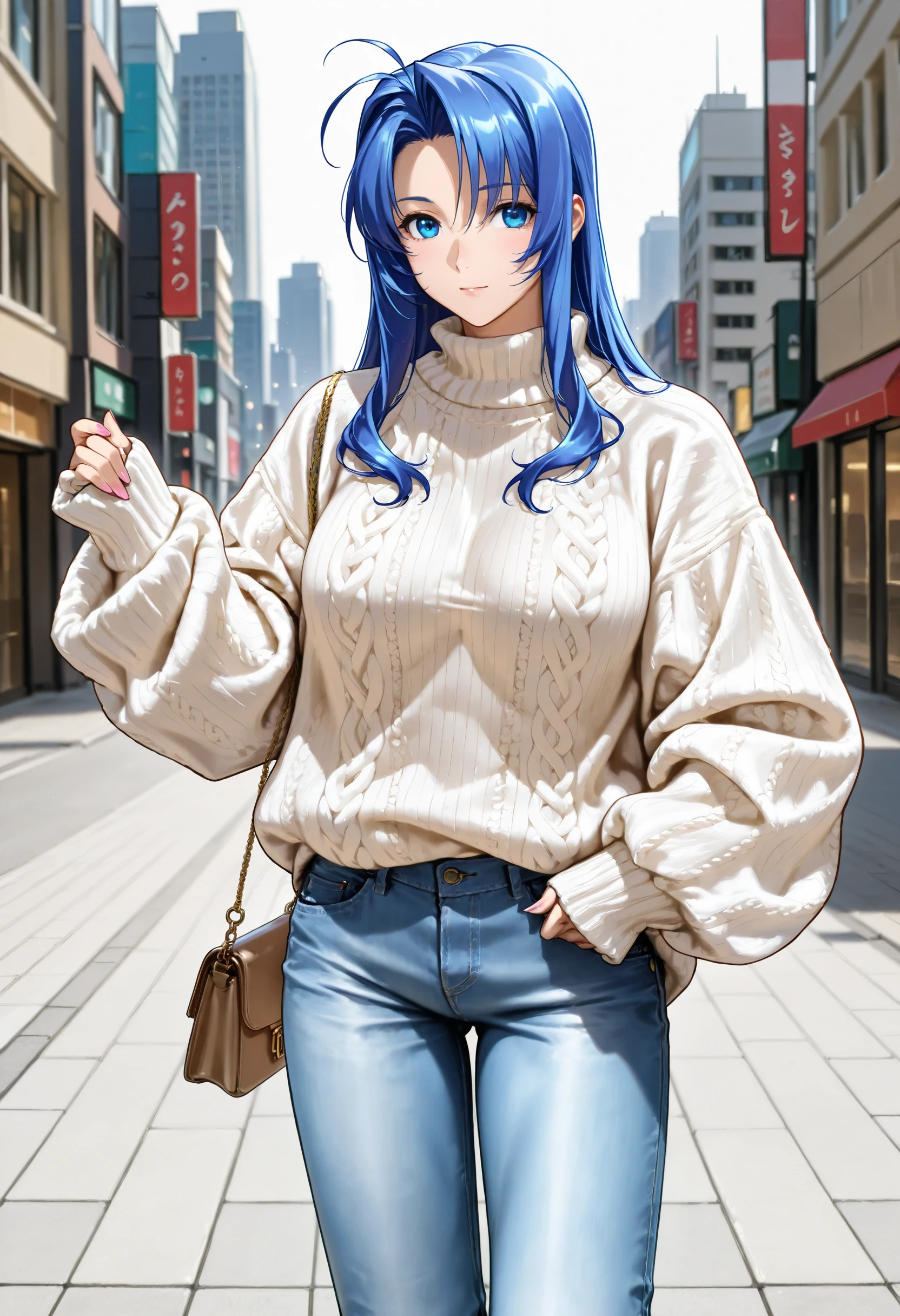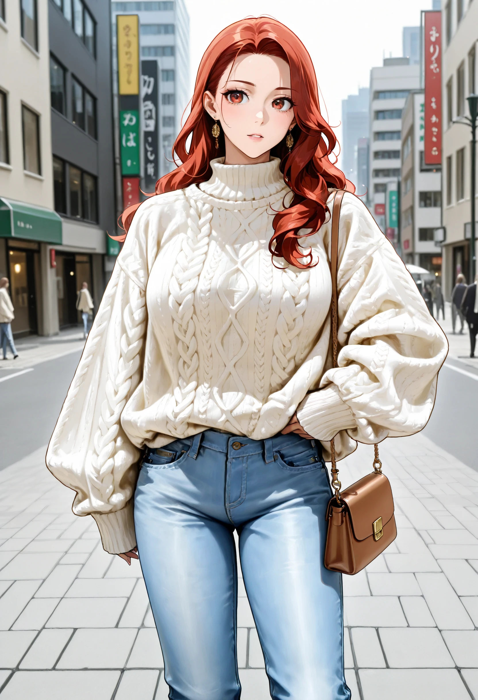 knitted sweater, sweater, long sleeves, cable knit, white sweater, sleeves past wrists,
