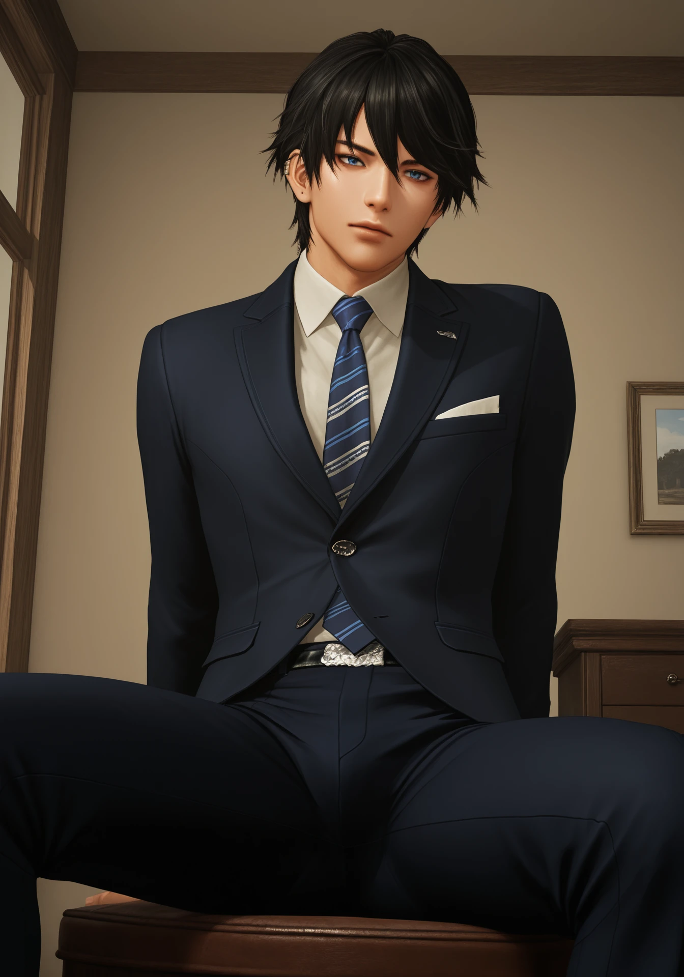 ziluan,short hair,black hair,blue eyes,single ear piercing