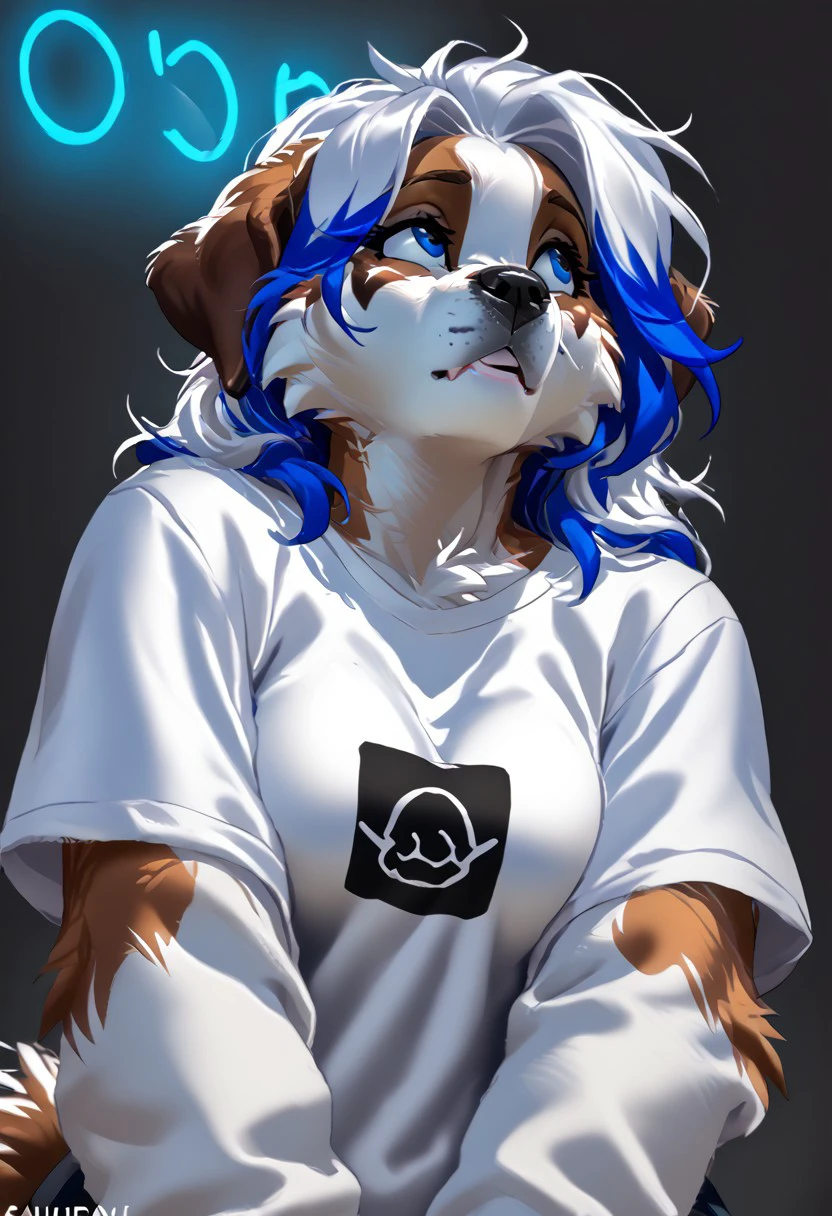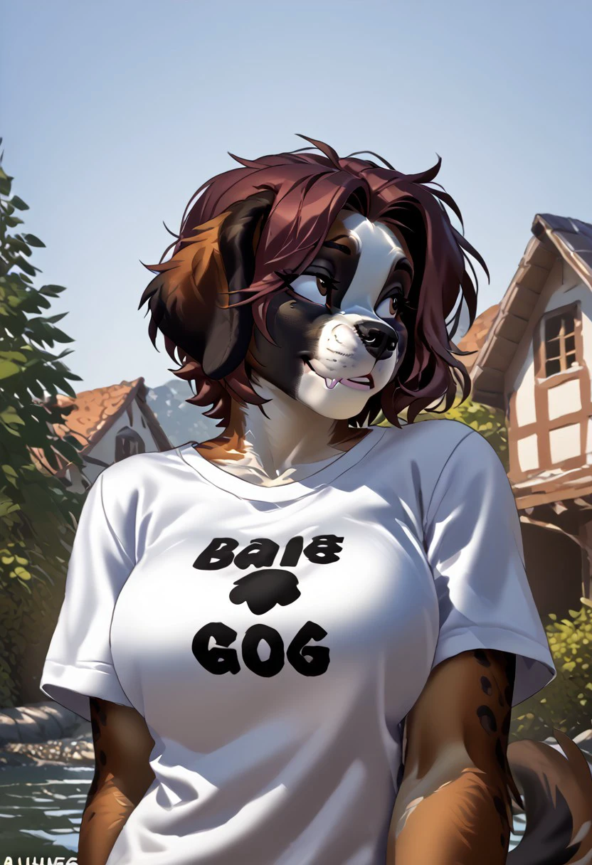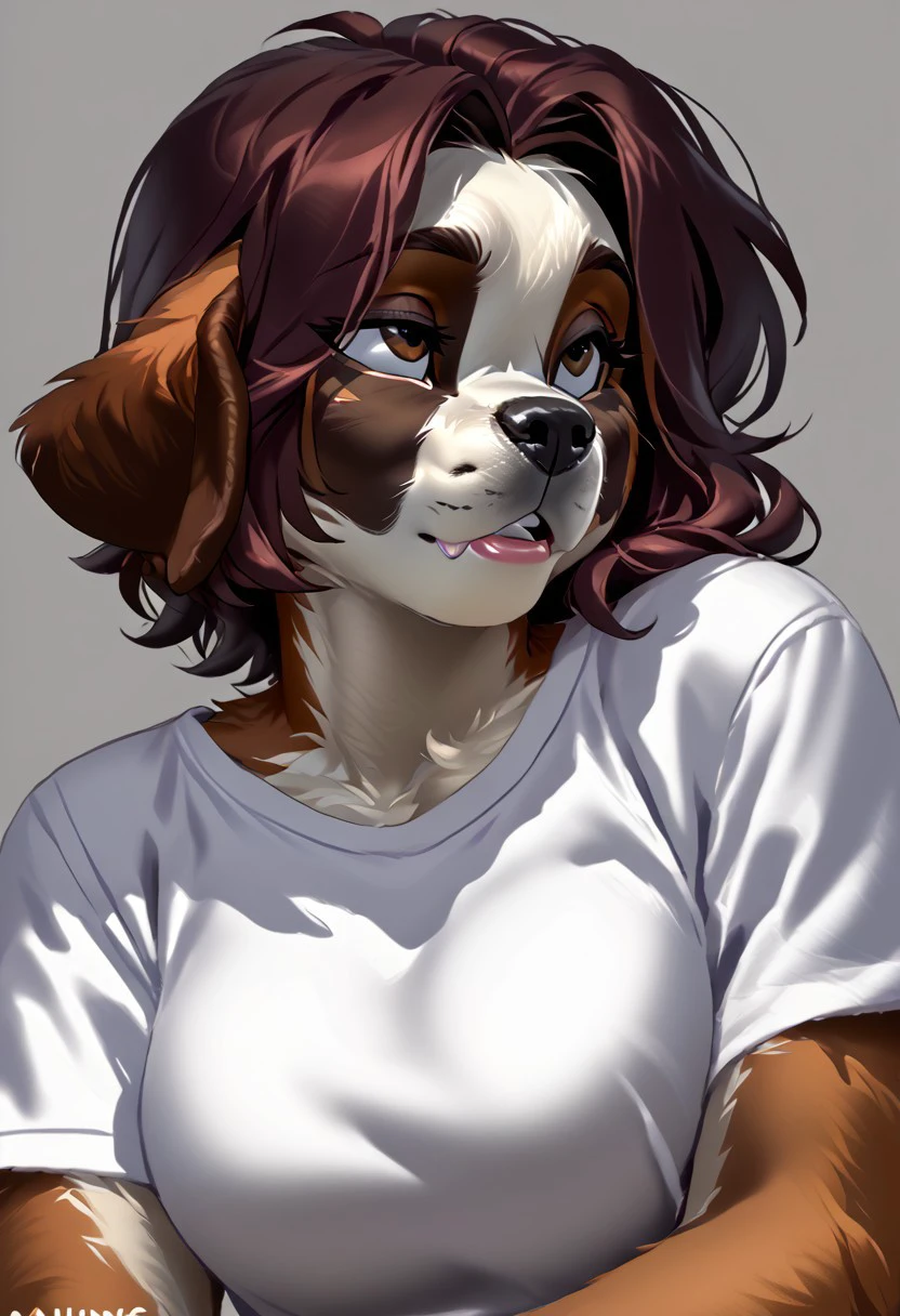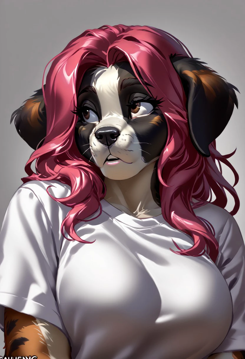 dog, canine, multicolored fur, brown fur, white fur, black fur, black fur spots around eyes,
