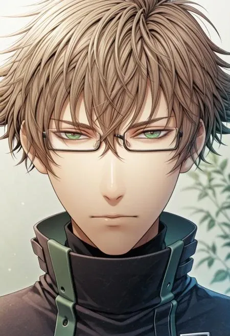 AMKent, 1boy, male focus, short hair, brown hair, glasses, green eyes
