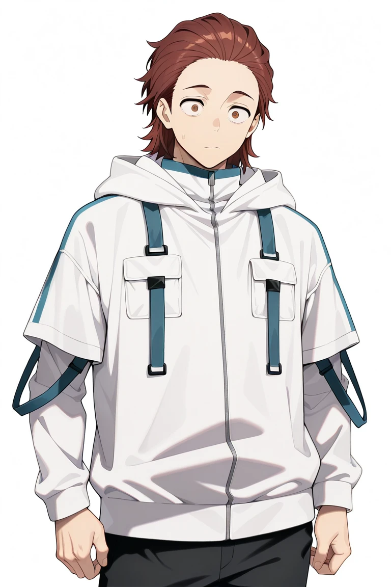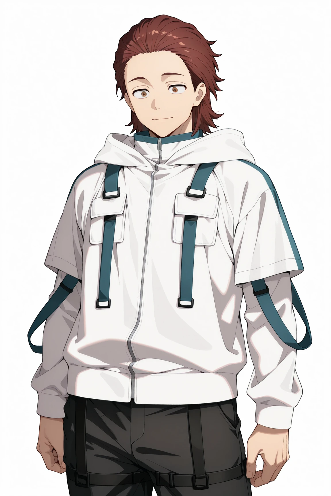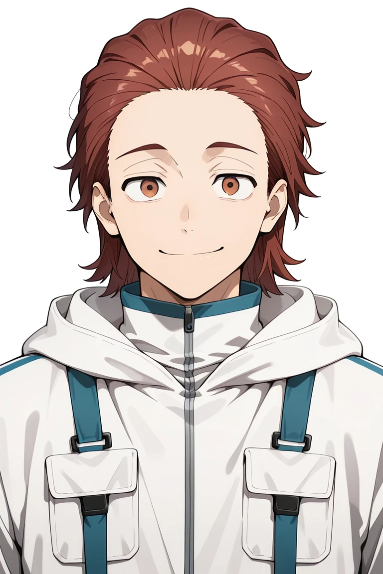 shingo1natori, brown eyes, brown hair, red hair, hair slicked back