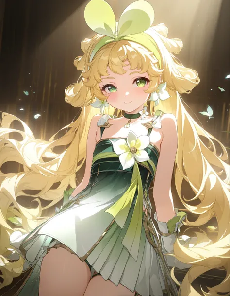 VerinaWW, 1girl, blonde hair, Green Dress, Green hairband, long hair