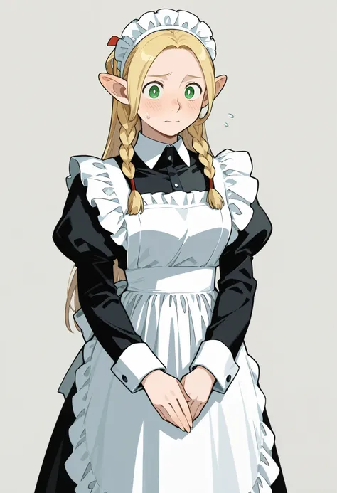 maid, maid apron, black dress, long sleeves, maid headdress