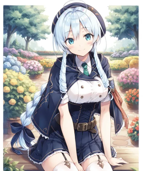 stella, blue eyes, very long hair, light bule hair, ahoge, single braid, blue hair ribbon, drill hair,