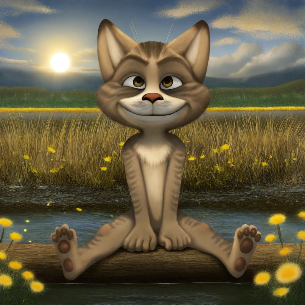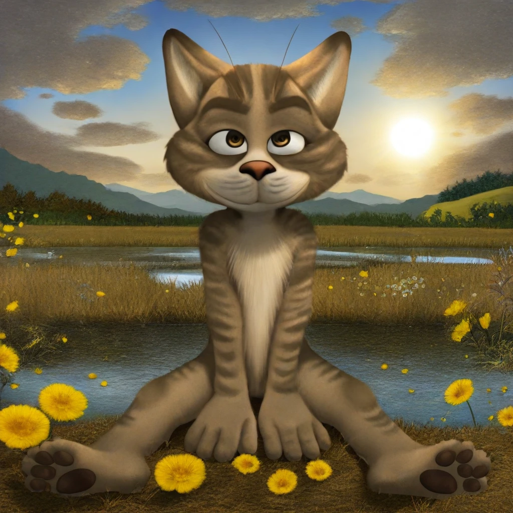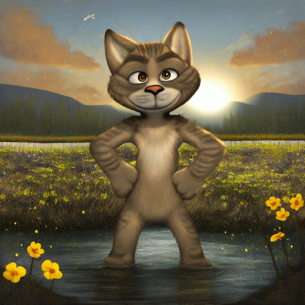BodiPhantom, furry, cat, CatiCas, boy, He has a gray-brown color with stripes, he has brown eyes,