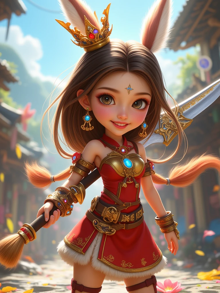 Color application: The colors are vivid and the contrast is high, especially creating a strong visual contrast between the characters' clothing and the background.