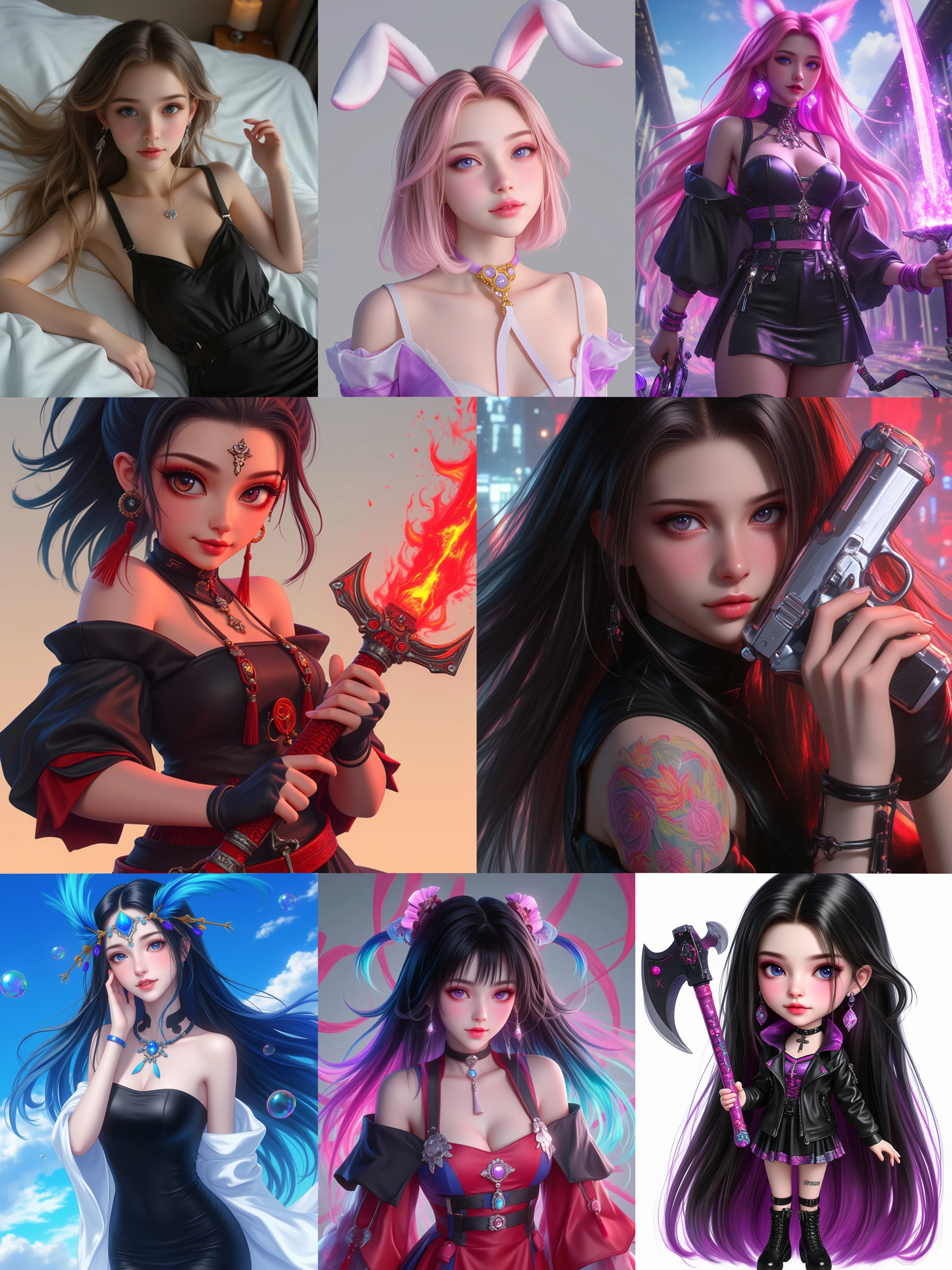 Fashion elements: The character's clothing design has a modern and fashionable feel, using materials such as lace, leather, metal, etc., paired with various accessories such as necklaces, earrings, etc.