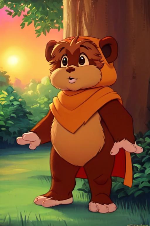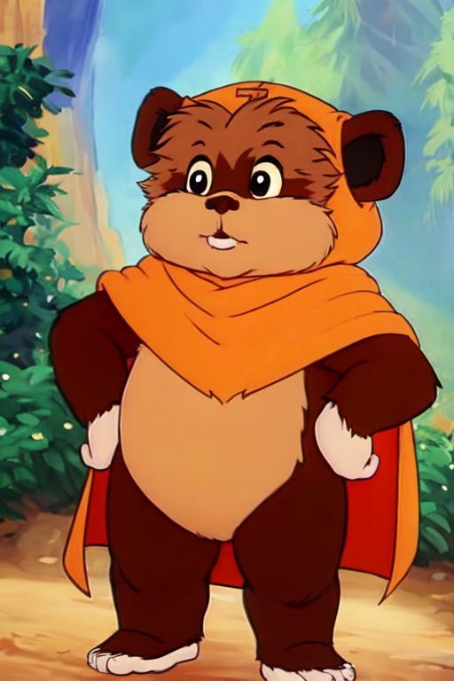 Wicket the Ewok from the old Ewoks / Droids saturday morning cartoon show. Trained on 30 cropped and resized screengrabs. Use both keywords for best effect.