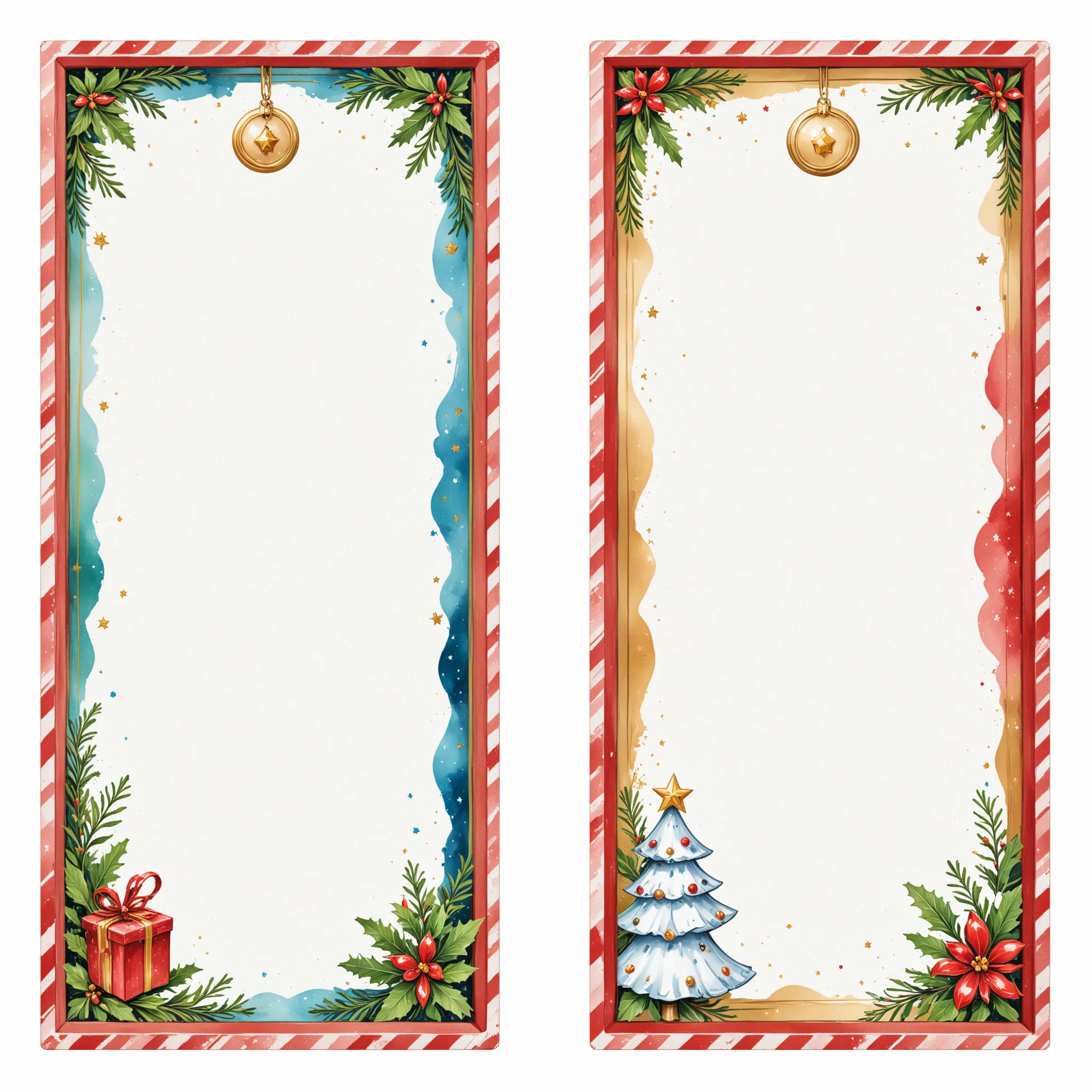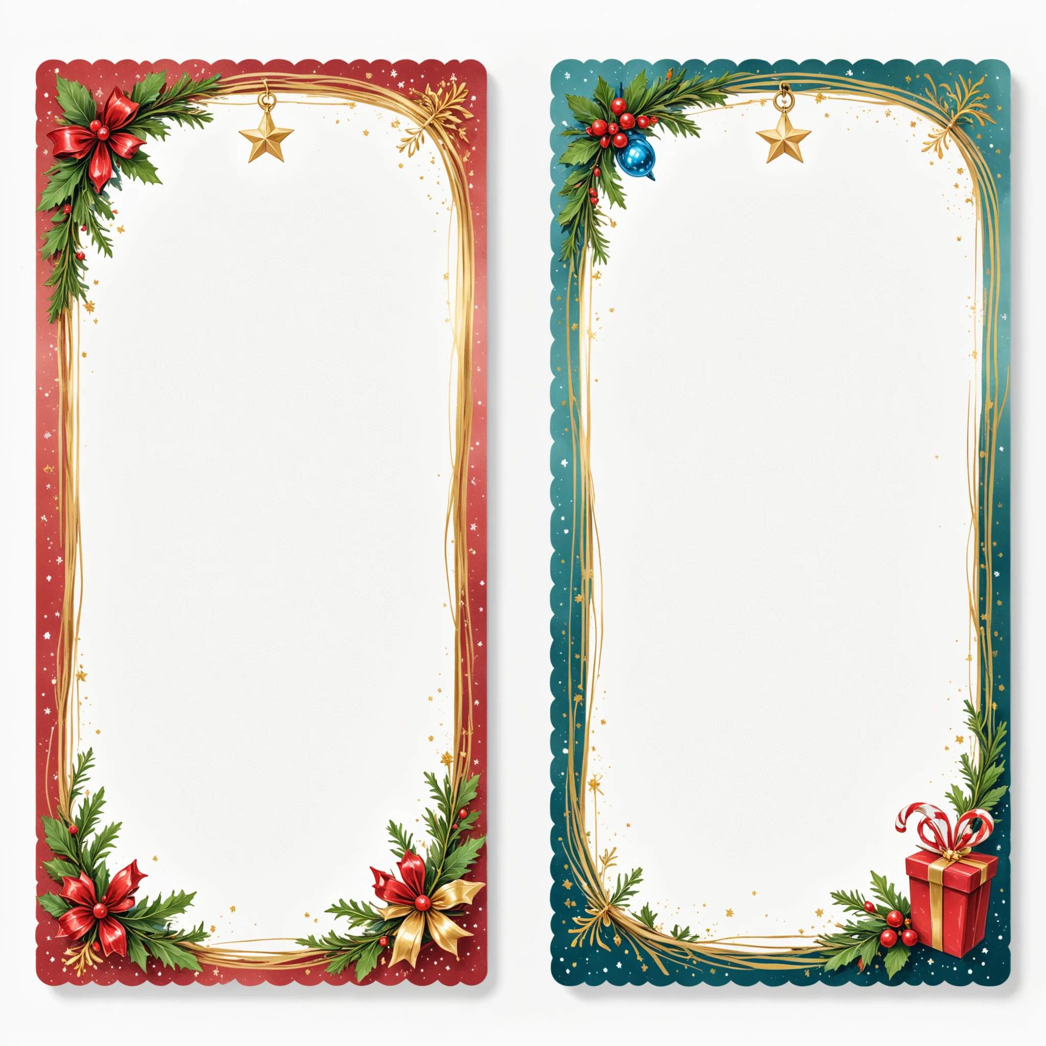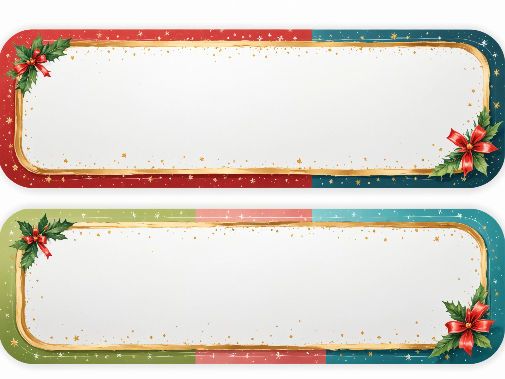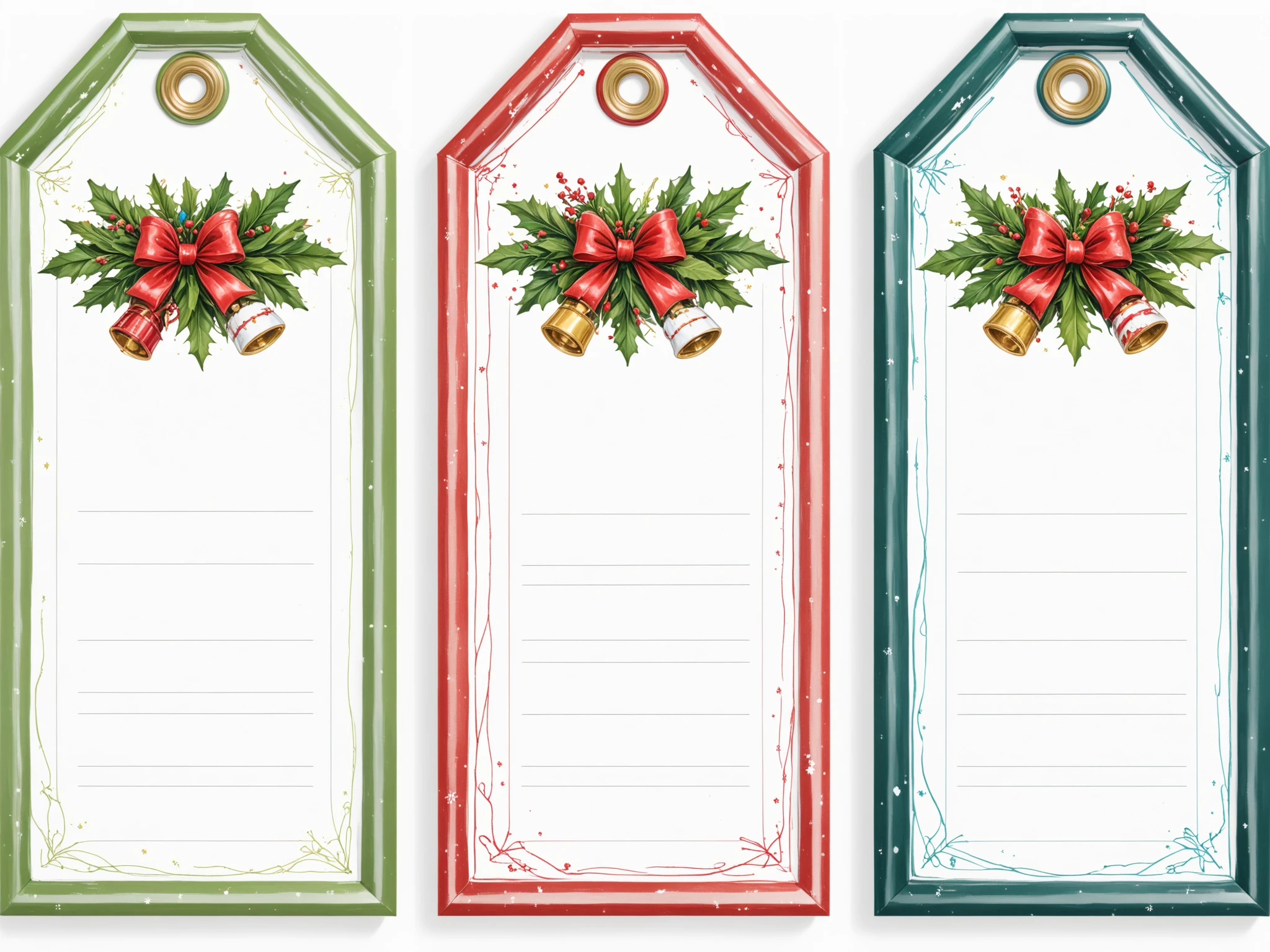 Example prompt: Christmas Label Tags 4x2 grid layout, lines, colorful christmas frames with a christmas icon on the side. No text. White background.