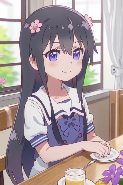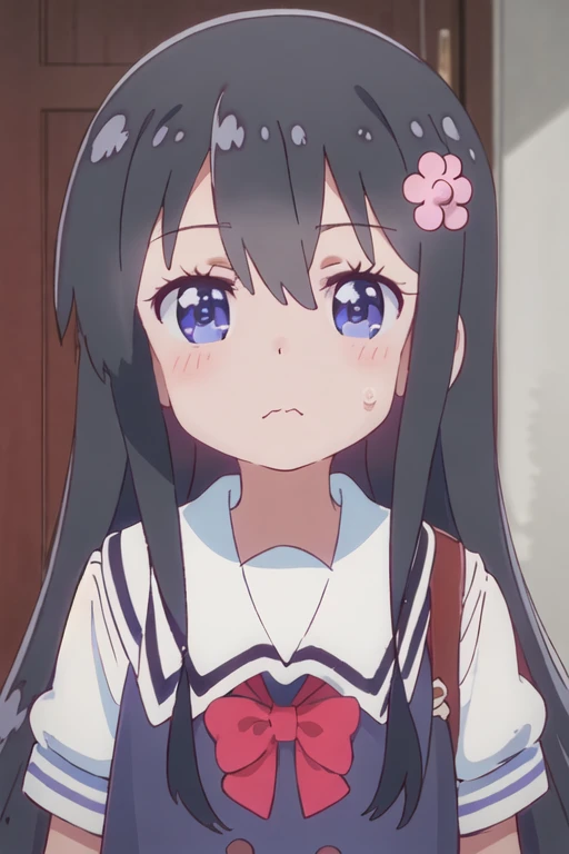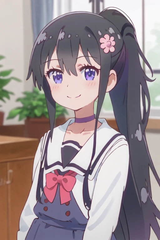 The trigger word is hana_shirosaki_watashinitenshigamaiorita, and the recommended tags are best quality, masterpiece, highres, solo, {hana_shirosaki_watashinitenshigamaiorita:1.15}, black_hair, long_hair, bangs, blush, blue_eyes, hair_between_eyes, hair_ornament, closed_mouth, flower, hair_flower, pink_flower.