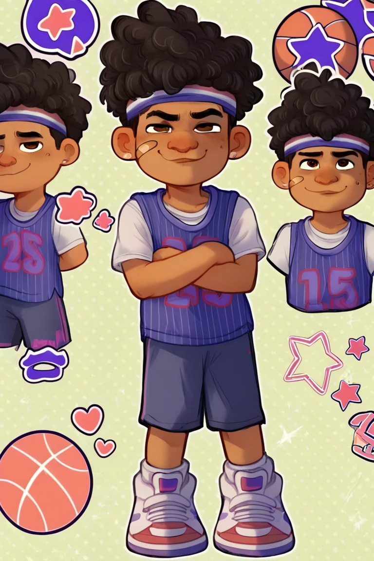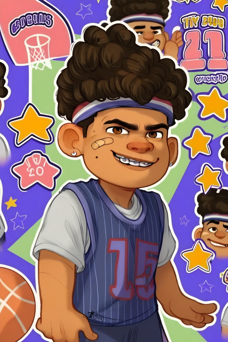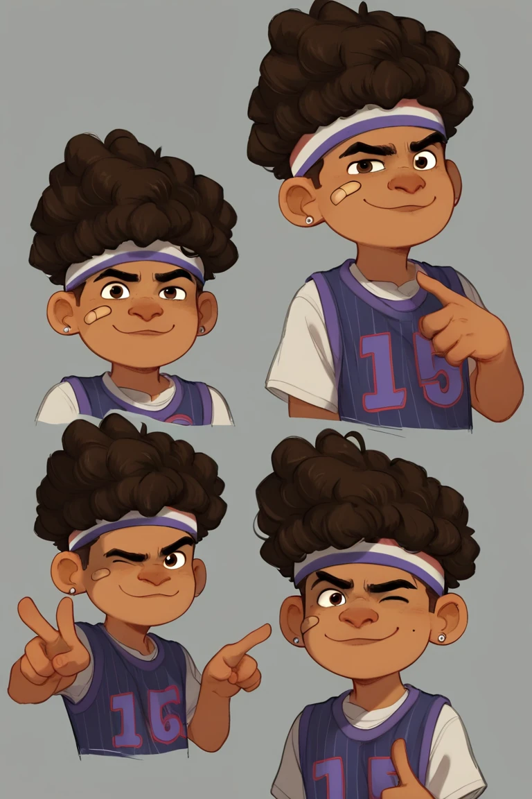 TylerNguyen, 1boy, curly hair, black eyes, dark skin,afro, headband, earrings,