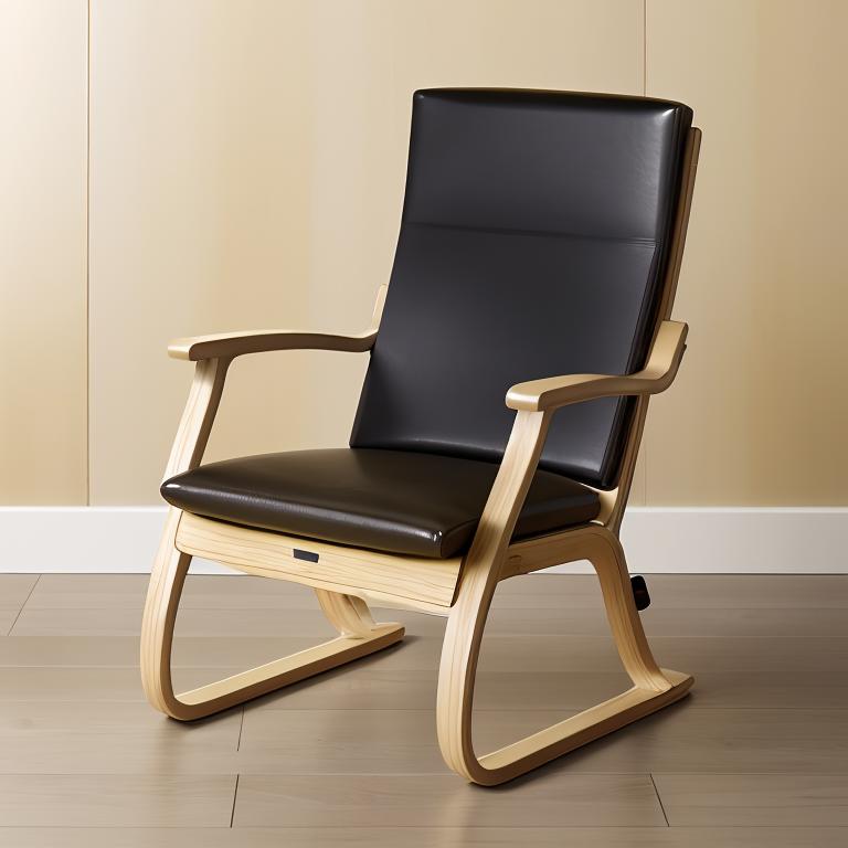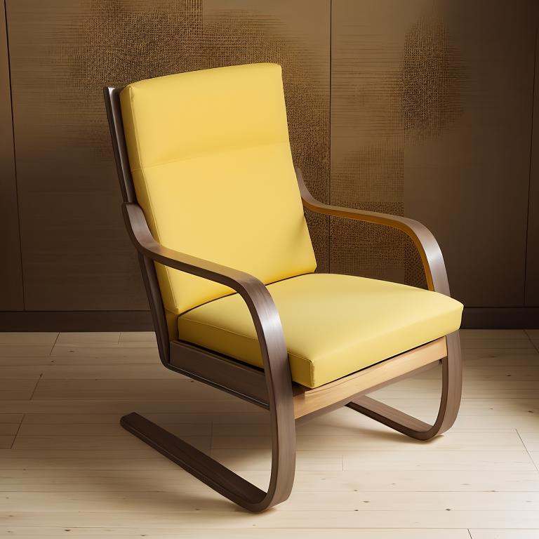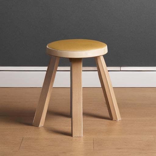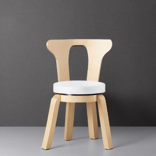 Prompt参考:artek, Solid birch, Solid birch, Birch plywood, Birch veneer, High-pressure laminate, Linoleum, Fabric upholstery and PU foam padding, Leather upholstery and PU foam padding, Leather upholstery,a small wooden stool with a curved wooden seat on a white background