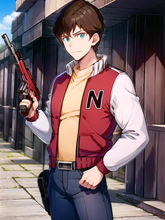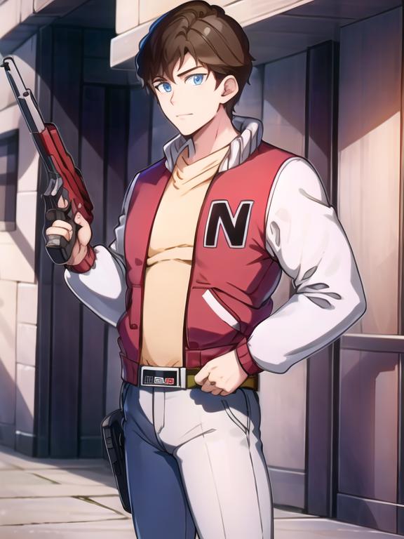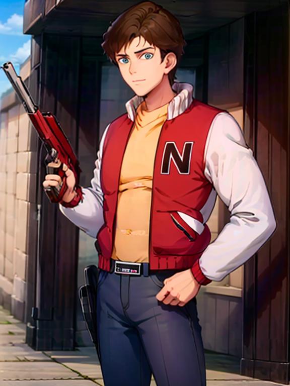 Keywords: Captain N, 1boy, pants, holding weapon, holding gun, energy gun