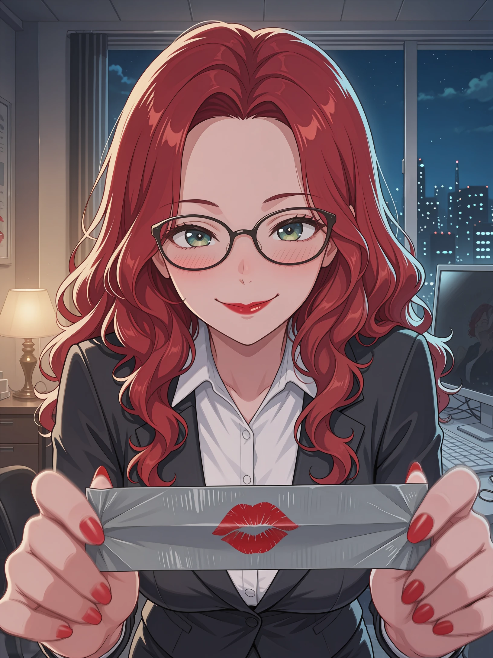 with hands, objects, and eye contact framed as if the viewer is