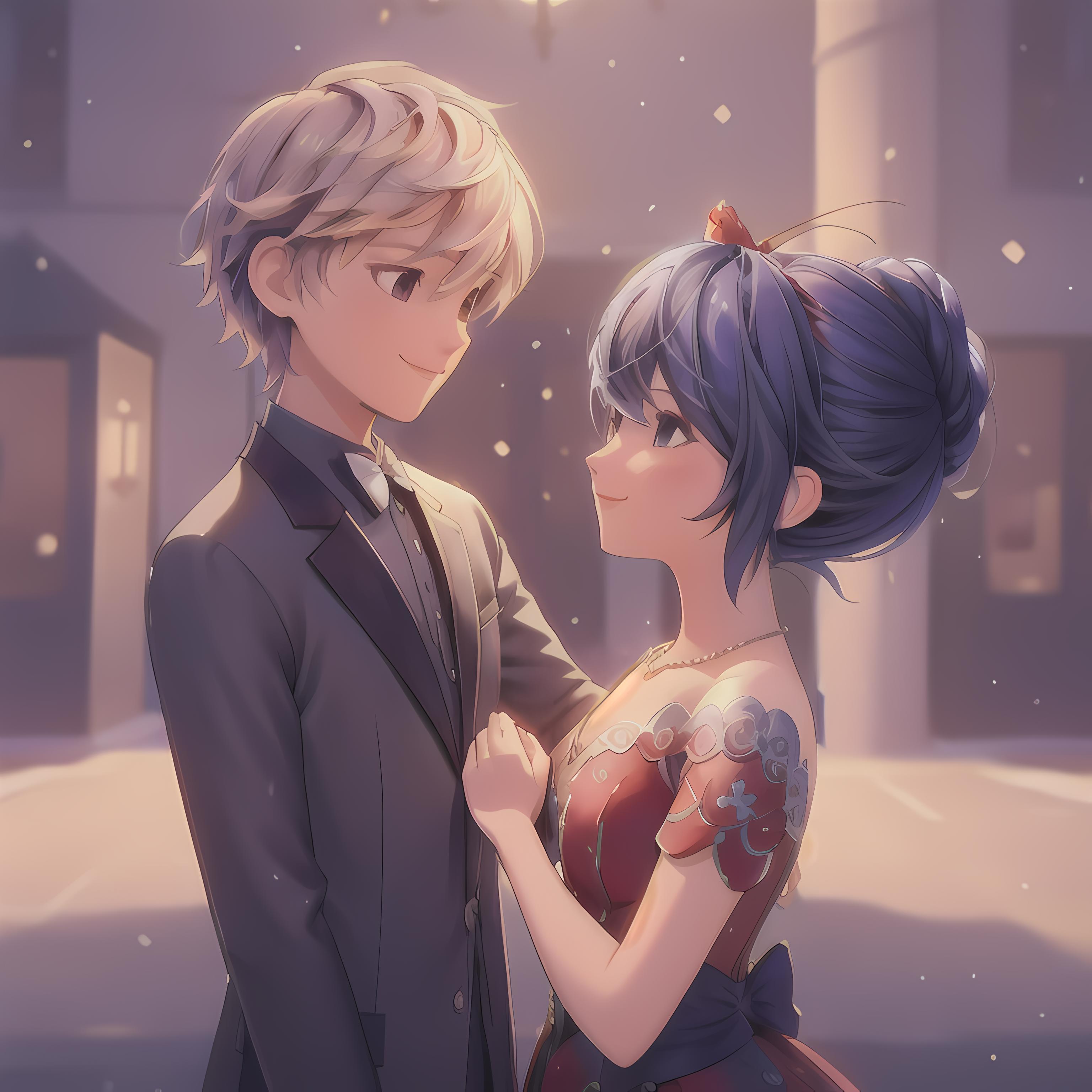 Marinette and Adrien in ball outfits from Miraculous Ladybug And Cat Noir: The Movie