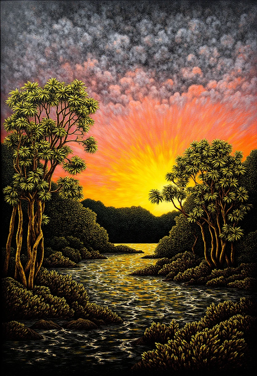 Lora is based on the Vietnamese lacquer style and in particular that of the artist Nguyen Gia Tri. With a unique, strong and fiery red color style in its own way.