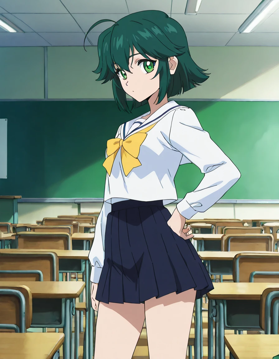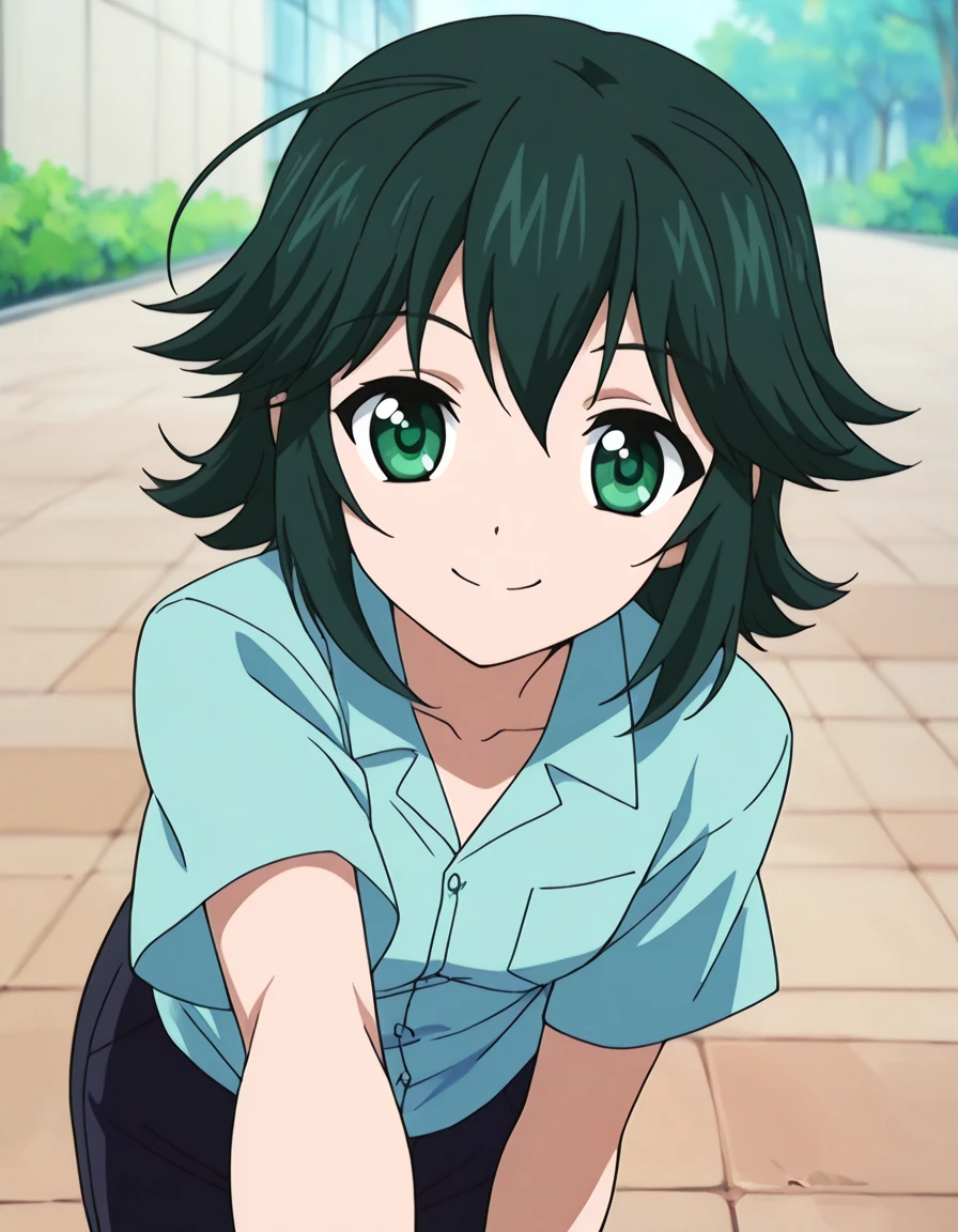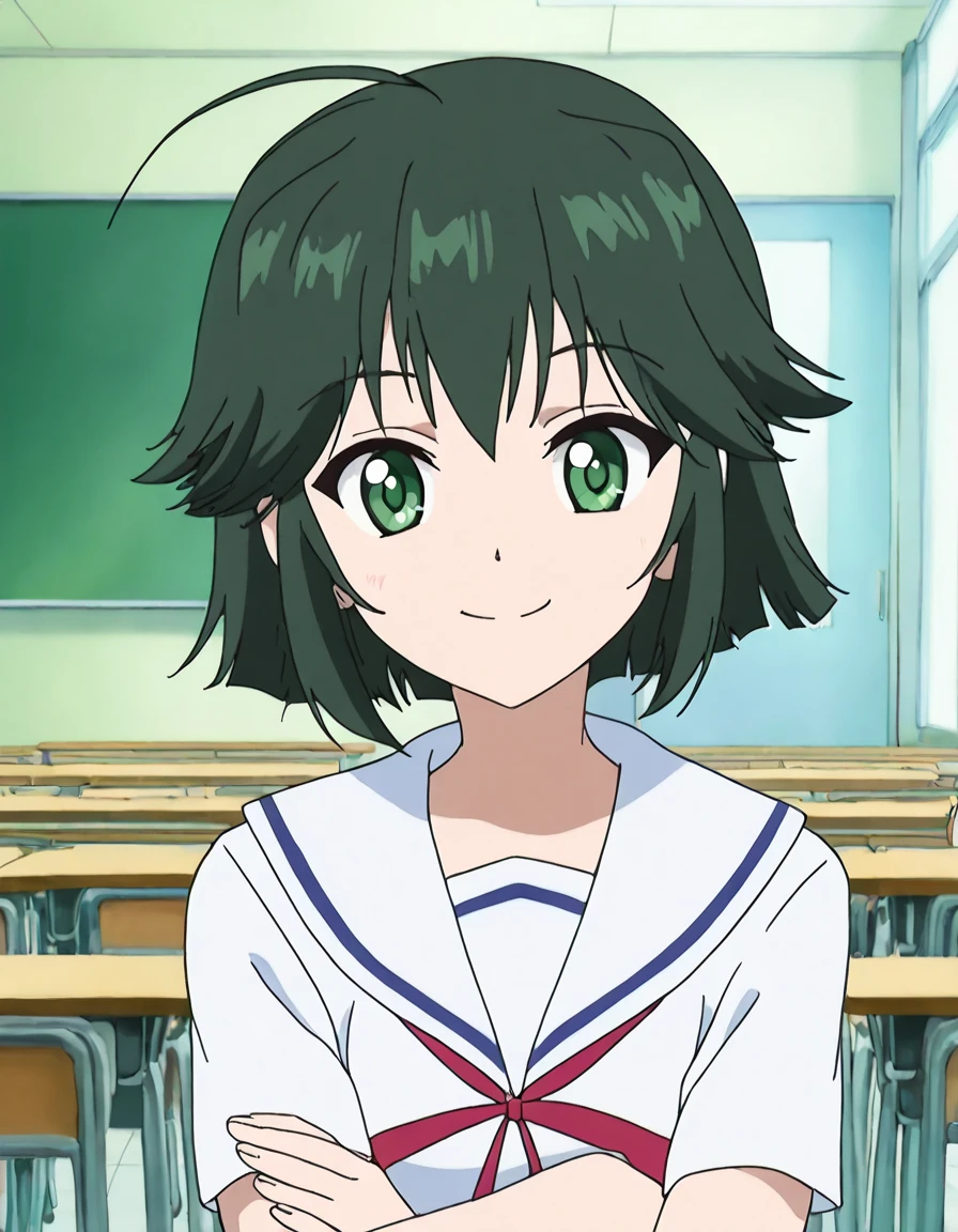 Trigger Words:dcmako,green eyes, short hair, green hair, ahoge