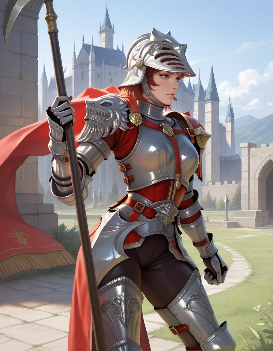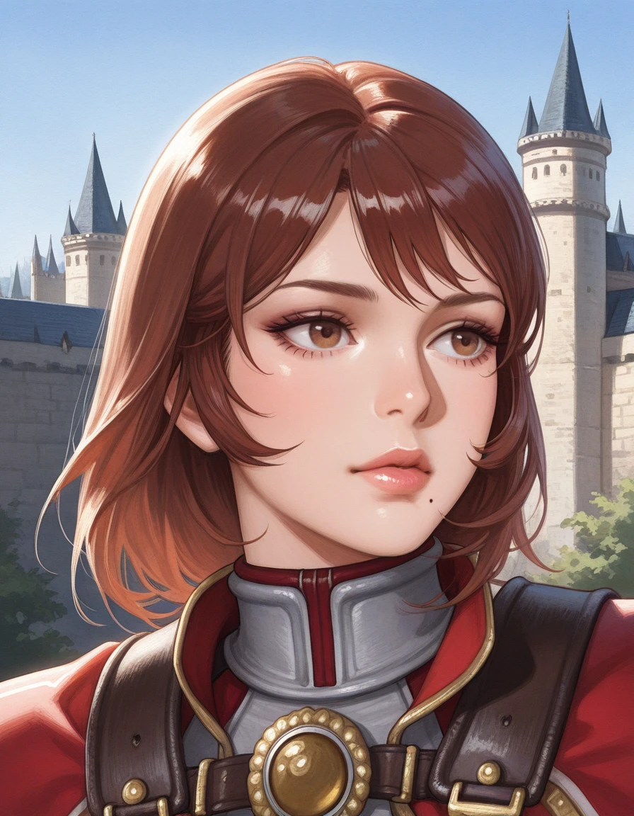 • Starting prompt: 1girl, hildegard von krone, brown hair, red hair, long hair, mole under mouth, lips, brown eyes, armor, knight, breastplate, shoulder armor, pauldrons, gauntlets, boots, greaves