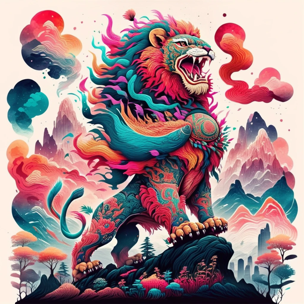 Just for fun. trigger words is "dance lion" and "SF_Carton style,carton"