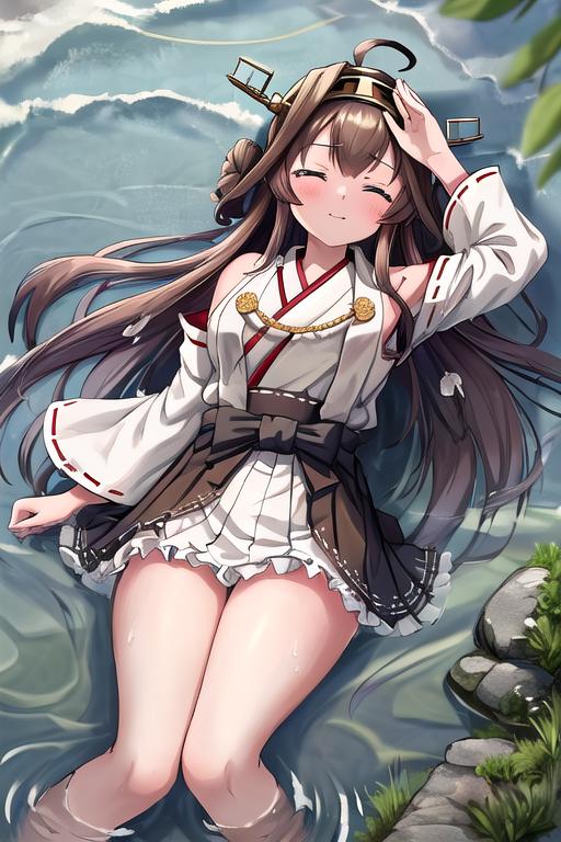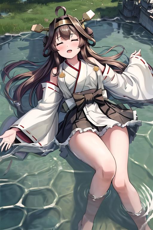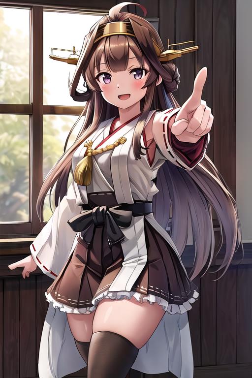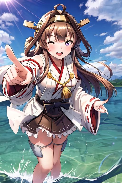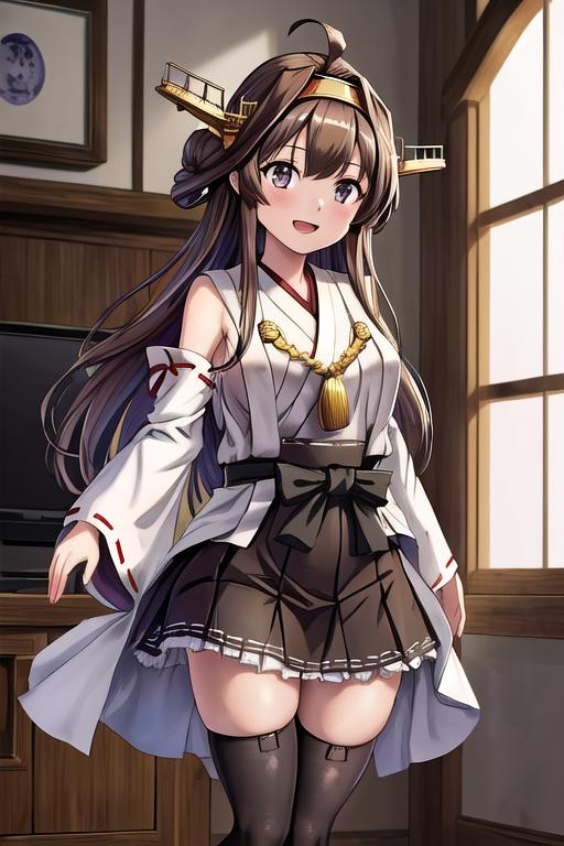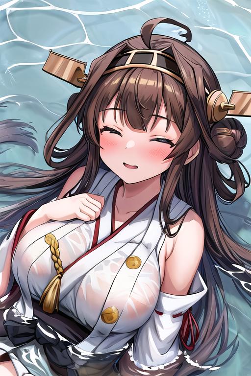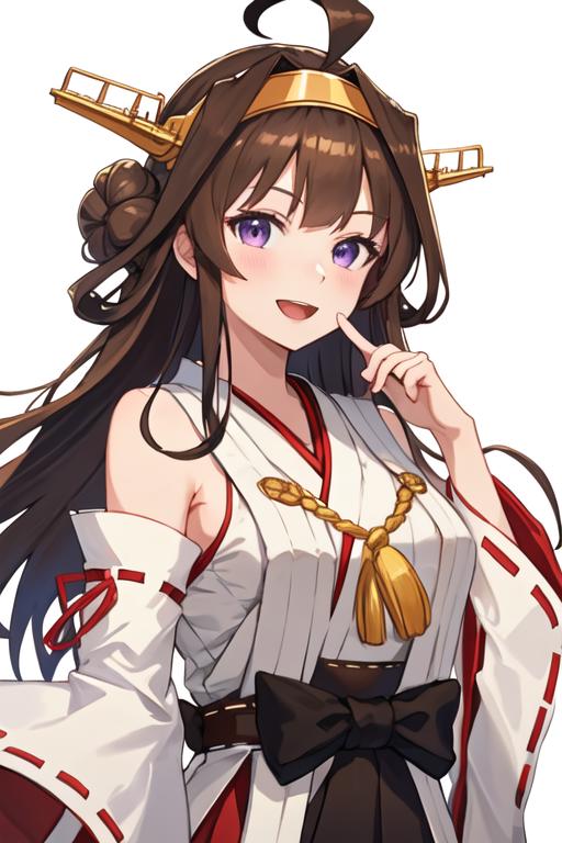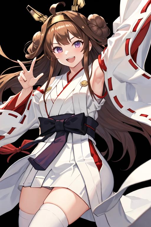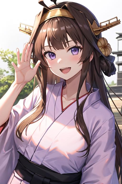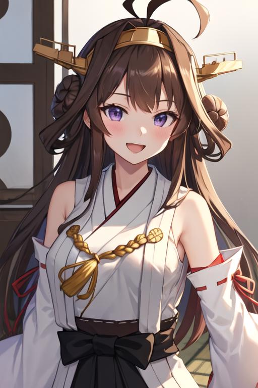 The trigger word is kongou_kantaicollection, and the recommended tags are best quality, masterpiece, highres, solo, {kongou_kantaicollection:1.15}, brown_hair, long_hair, ahoge, hairband, hair_bun, double_bun, headgear, smile, nontraditional_miko, purple_eyes, open_mouth.