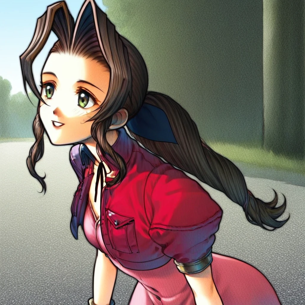 The original design for aerith from the ff7 artwork. There was minimal training data, so don't expect miracles.