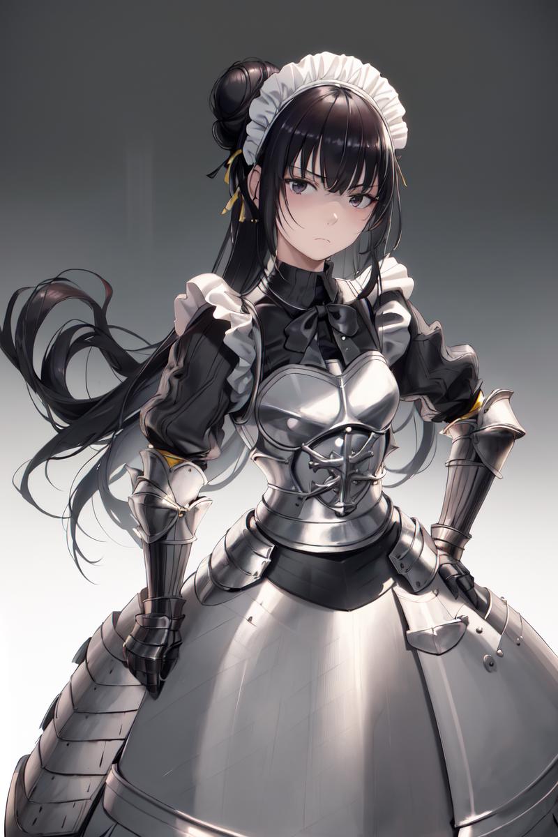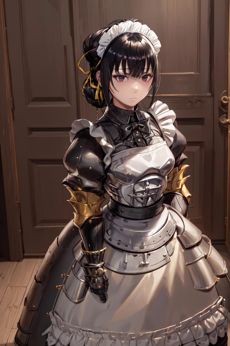 For armored maid outfit: as maid, but add "(armor, armored dress:1.2)"