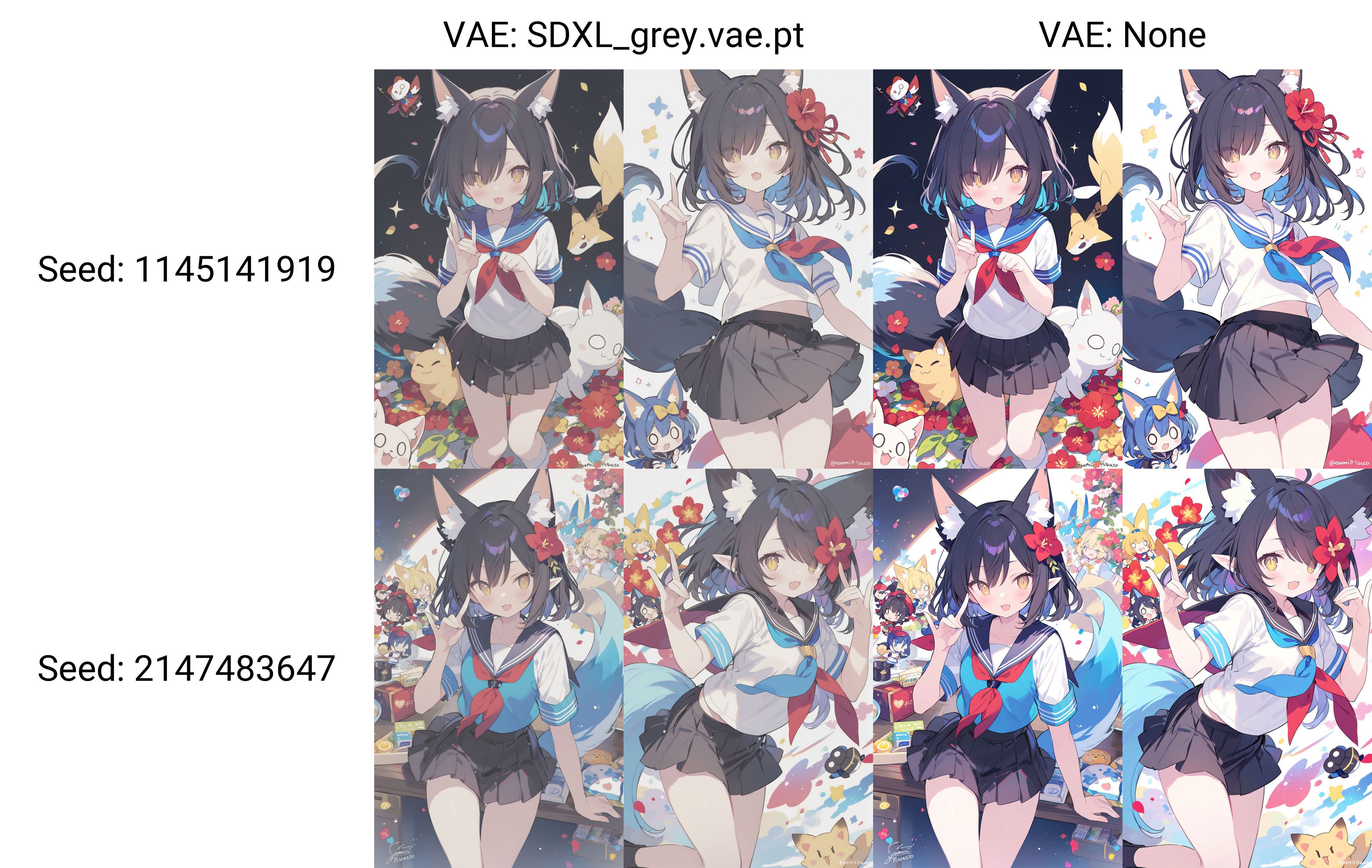 这个是专门用于再SDXL复刻SD1.5烂VAE灰色调的VAE,你可以将其丢到模型里替换模型原有的VAE,从而使得模型在正常情况下也生成灰色调的图。