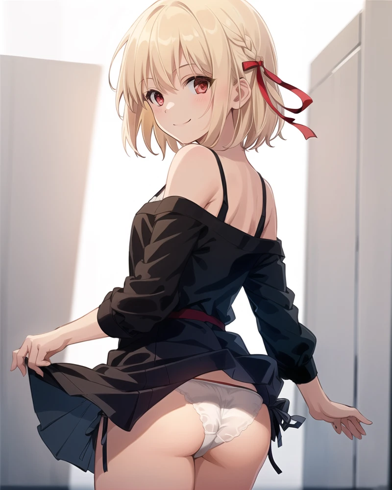 red_jacket, ribbon,red_eyes,blond hair,short hair,hair_ribbon,smile,