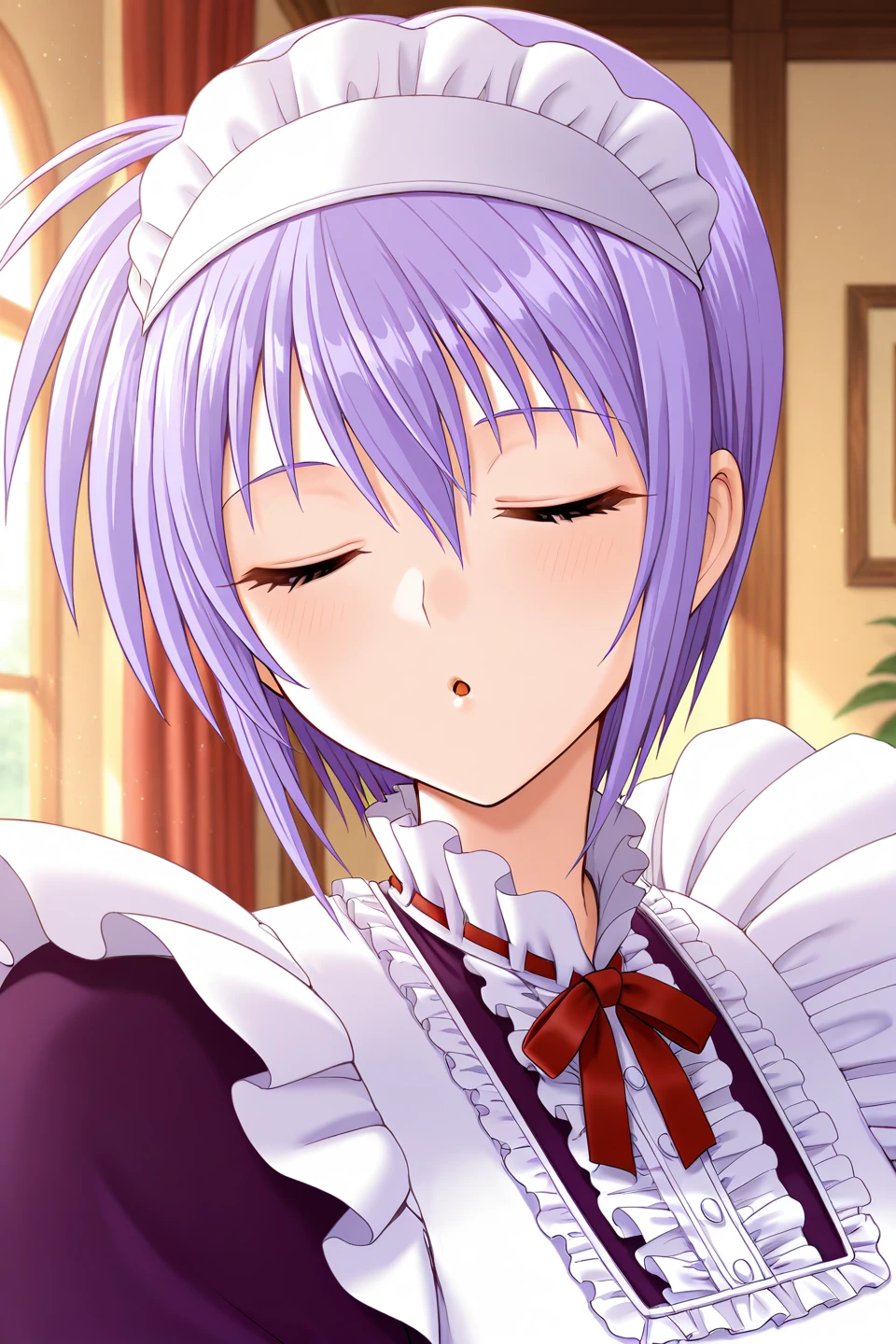 blush, :o, bored, closed eyes, facing viewer, open mouth, parted lips