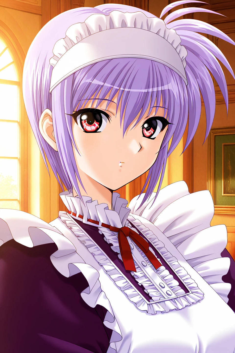 noel k ehrlichkeit,red eyes,light purple hair,short hair,sidelocks,hair between eyes,