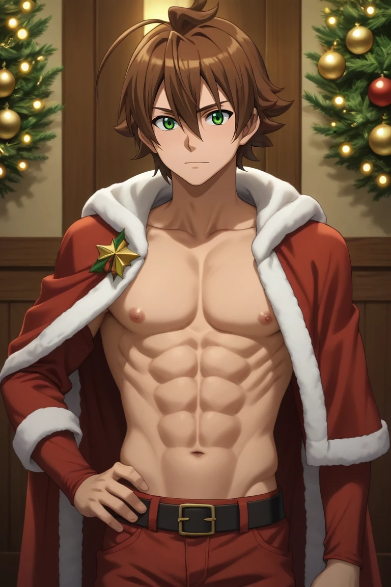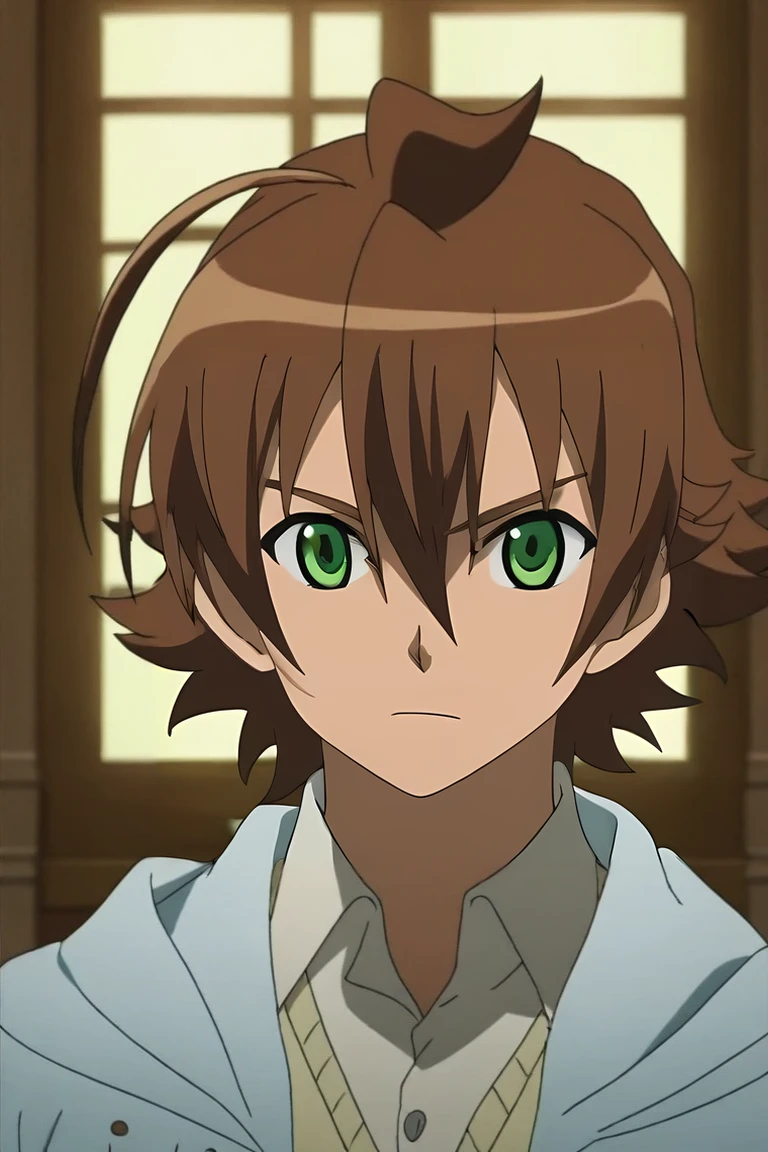 tatsumi_akame_ga_kill, brown hair, green eyes, short hair, hair between eyes, ahoge