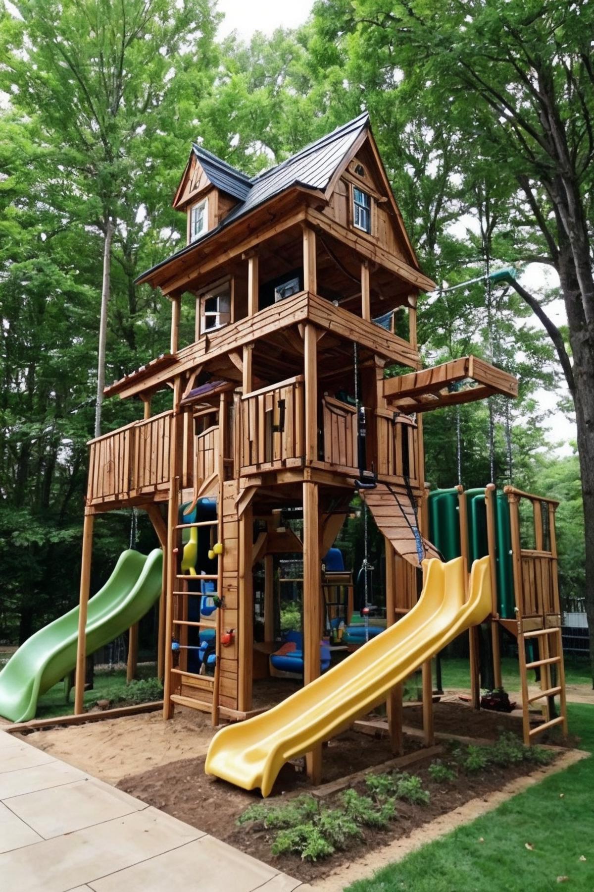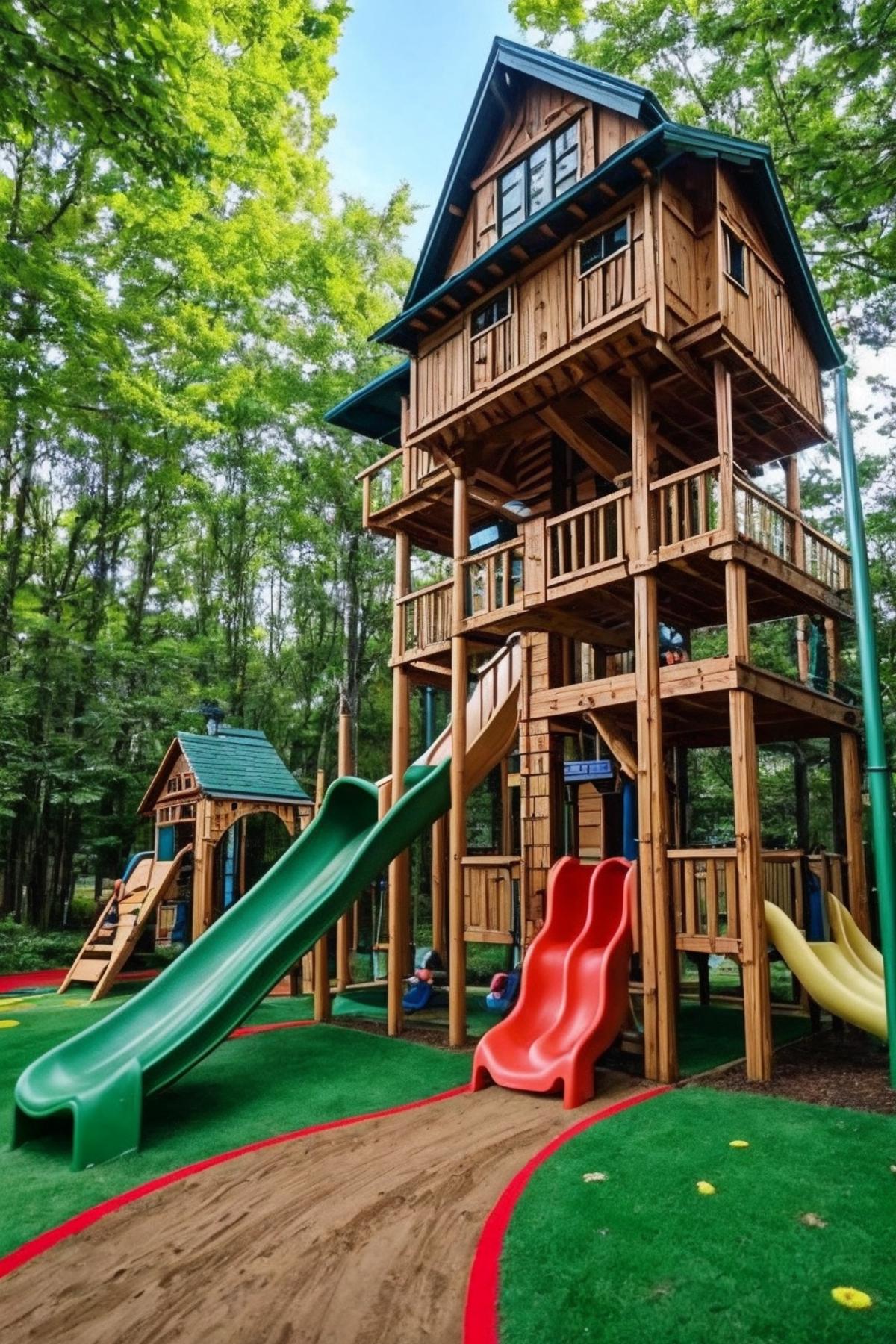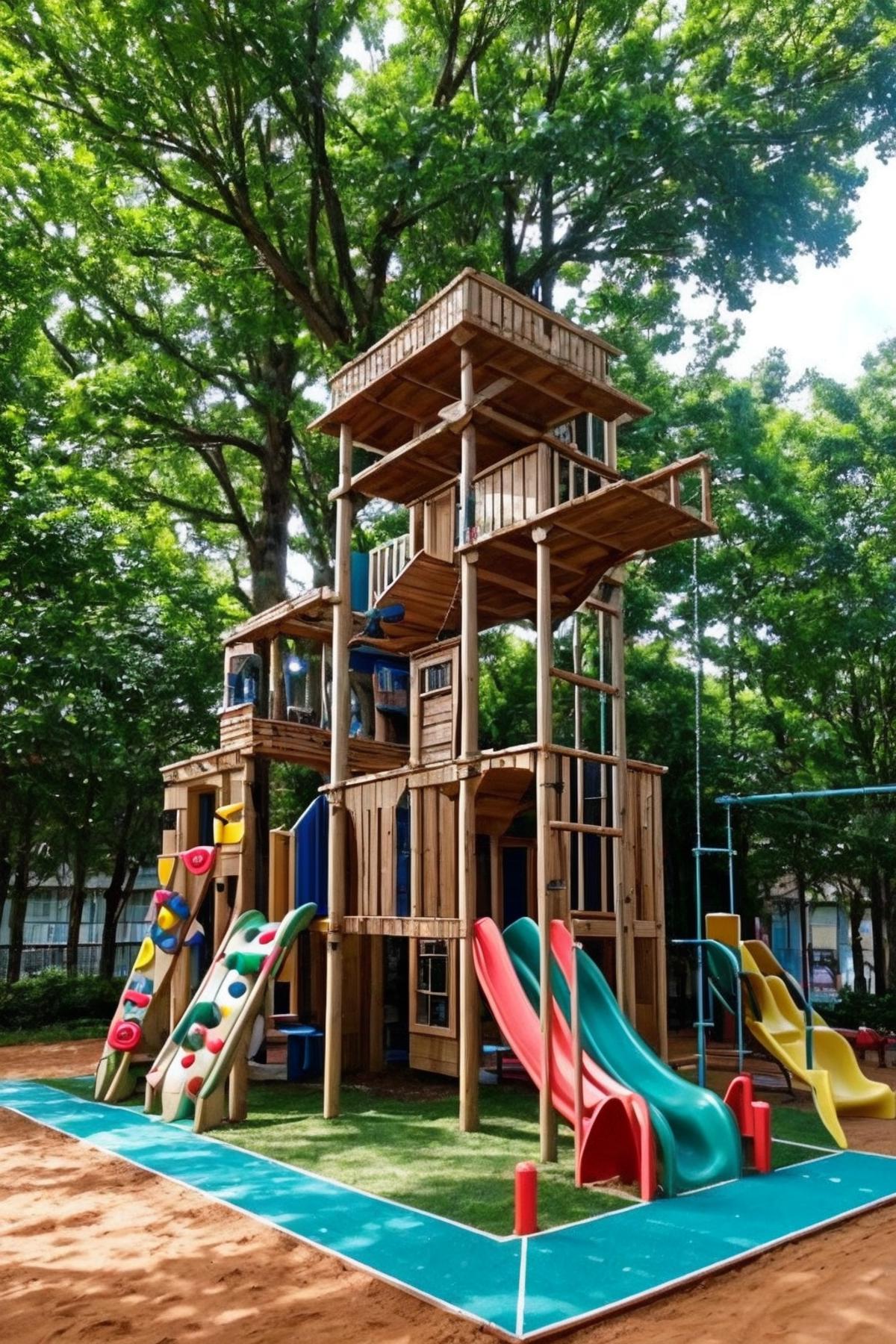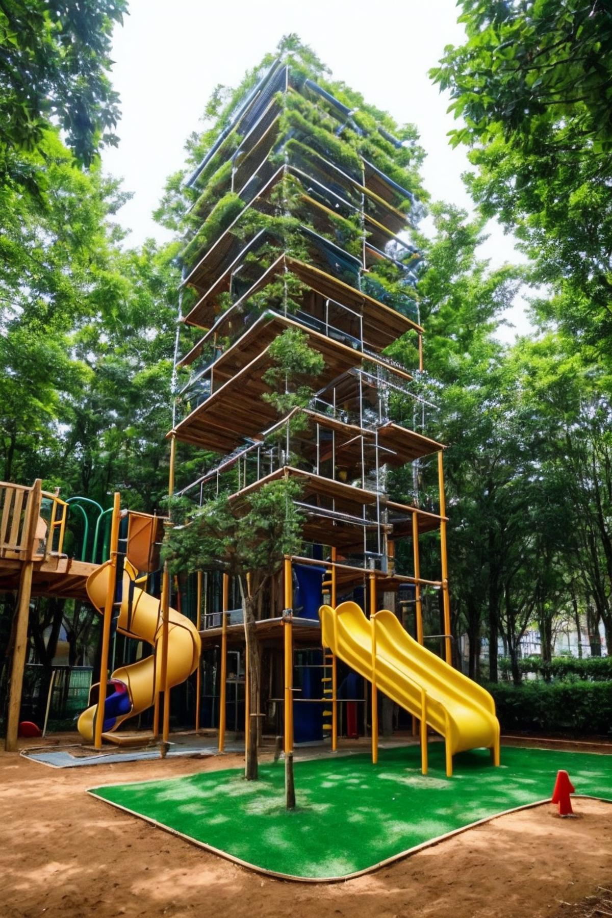 The concept of a children's playground refers to a designated area designed for children to engage in recreational and play activities. Playgrounds are typically equipped with various play structures, equipment, and features that are intended to promote physical activity, social interaction, creativity, and cognitive development in children.