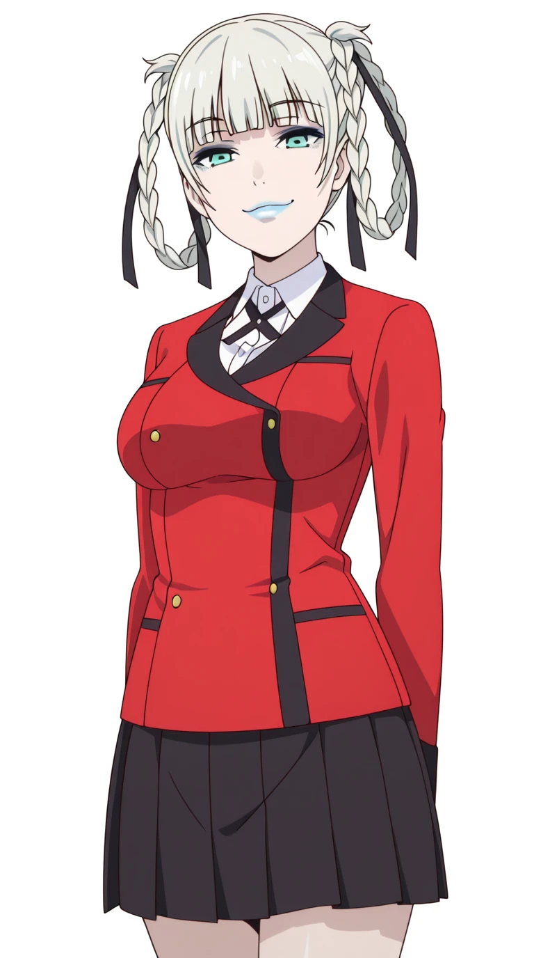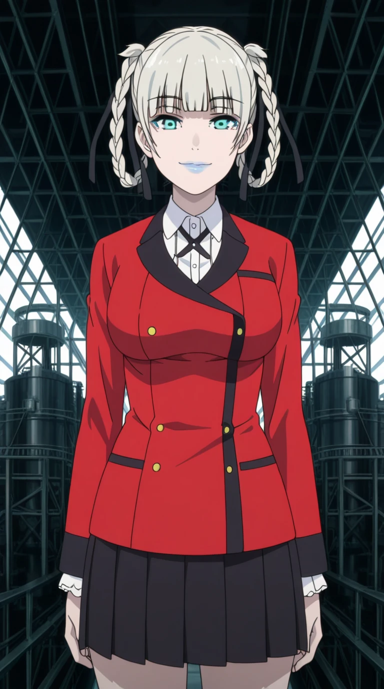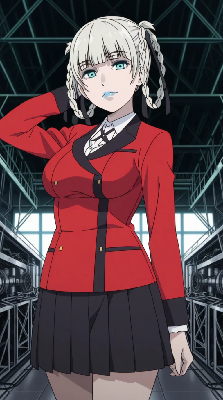 kirari momobami, momobami kirari, bangs, blue eyes, hair ribbon, braid, blunt bangs, aqua eyes, makeup, lipstick, hair rings, blue lips, mature female, medium breasts, anime screencap