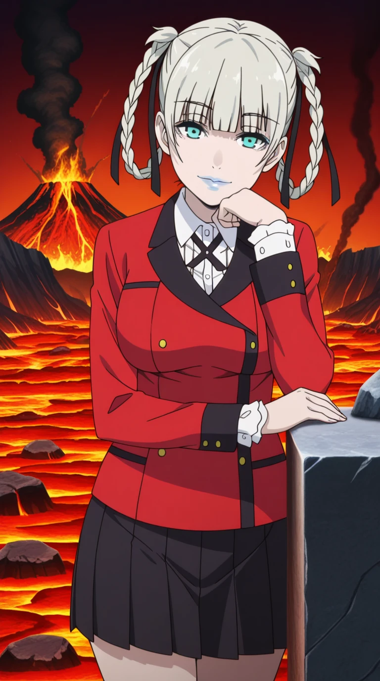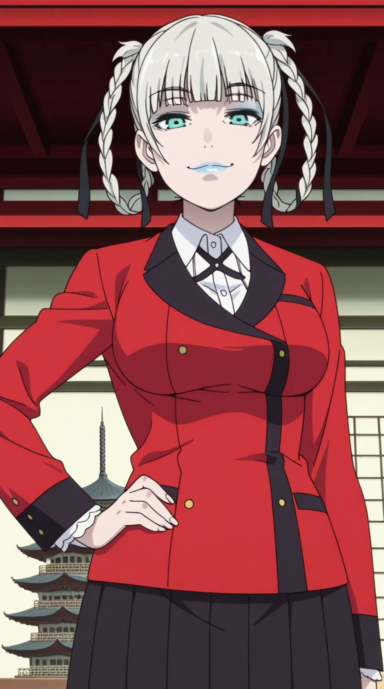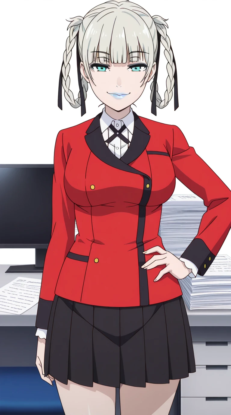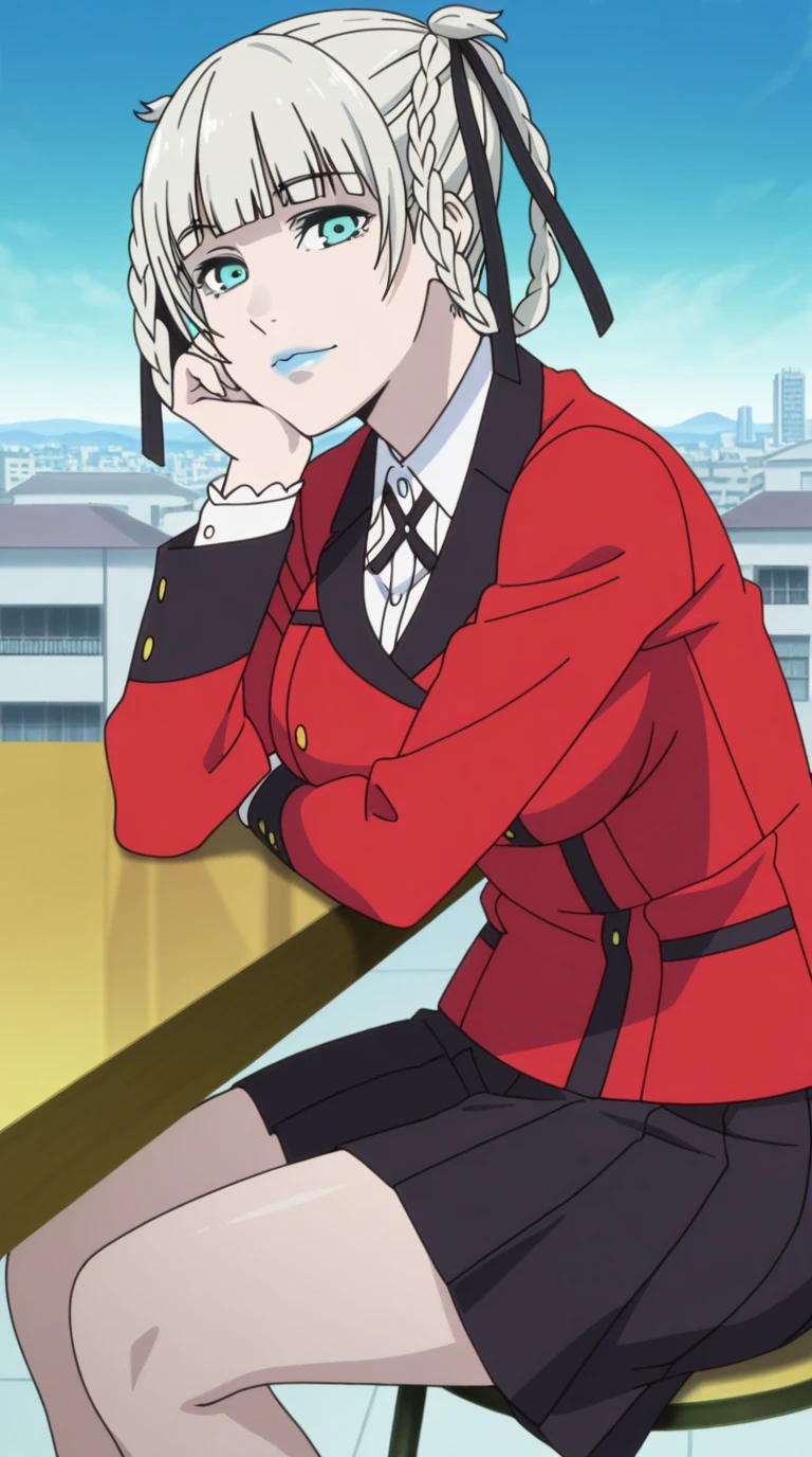 kirari momobami, momobami kirari, bangs, blue eyes, hair ribbon, braid, blunt bangs, aqua eyes, makeup, lipstick, hair rings, blue lips, mature female, medium breasts, anime screencap