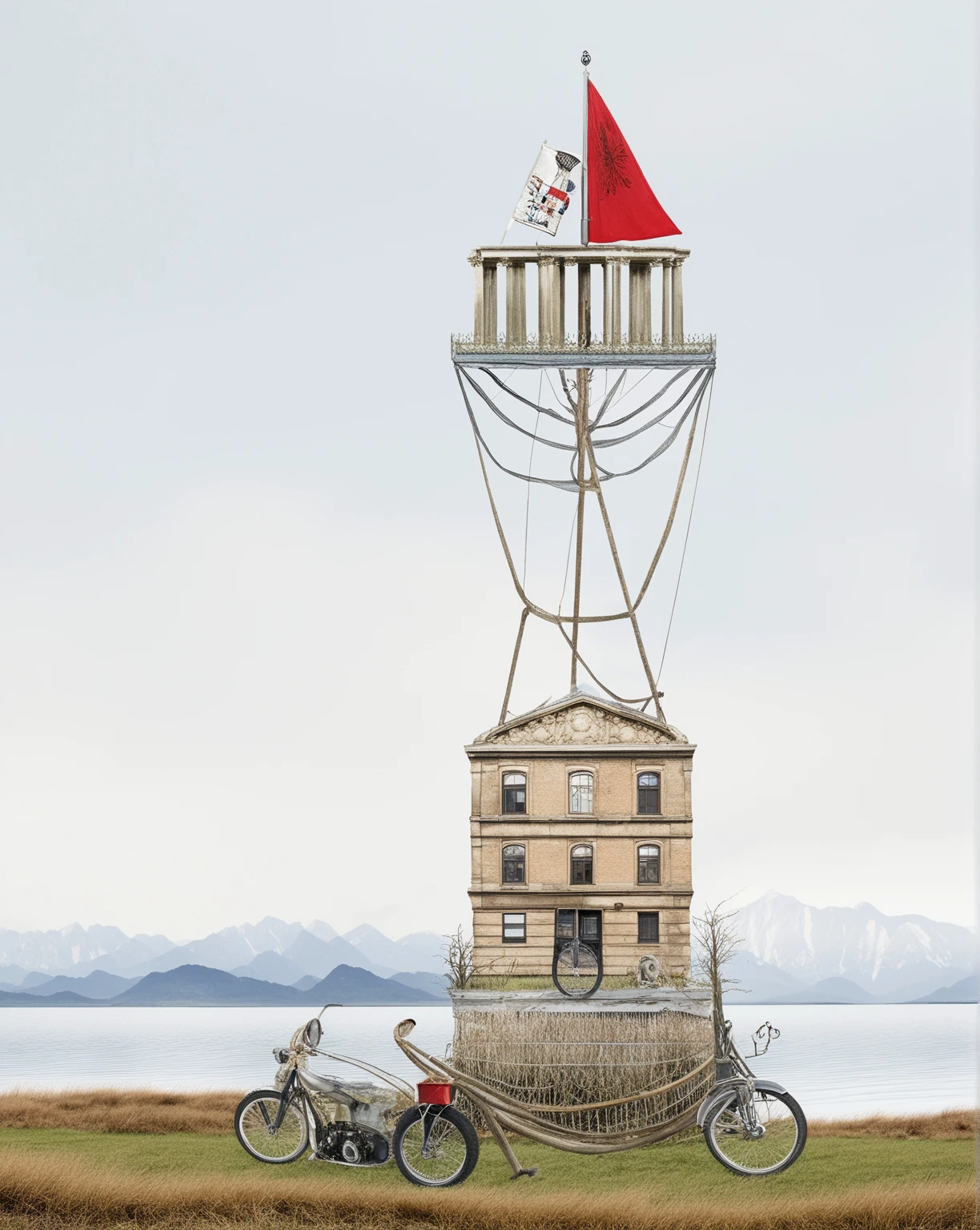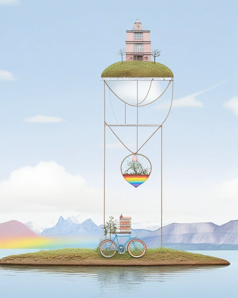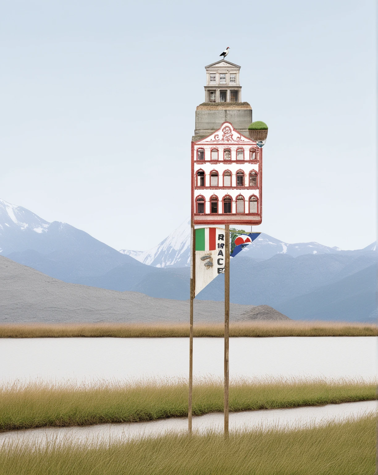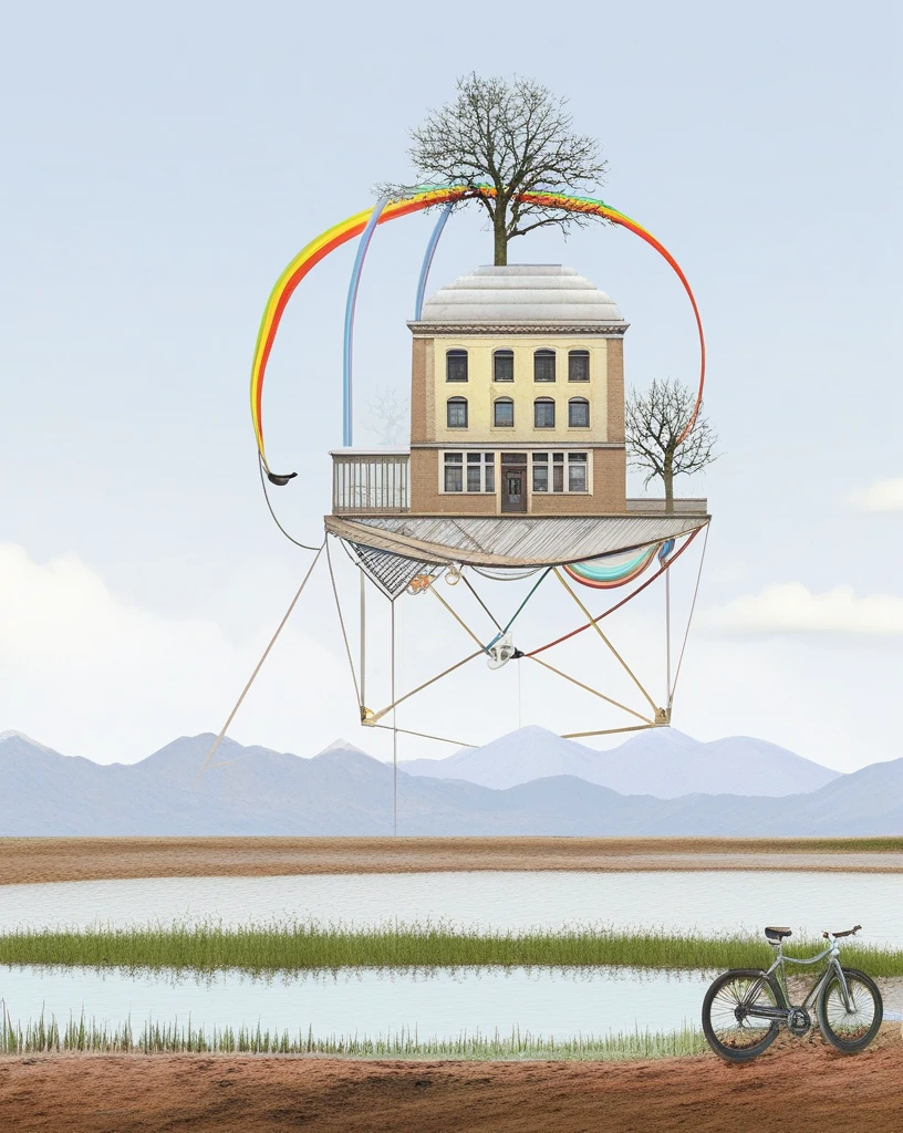 Matthias Jung’s suspended collage architecture.Helping creators of strange minimalist surrealistic compositions against the backdrop of Scandinavian harsh landscapes.