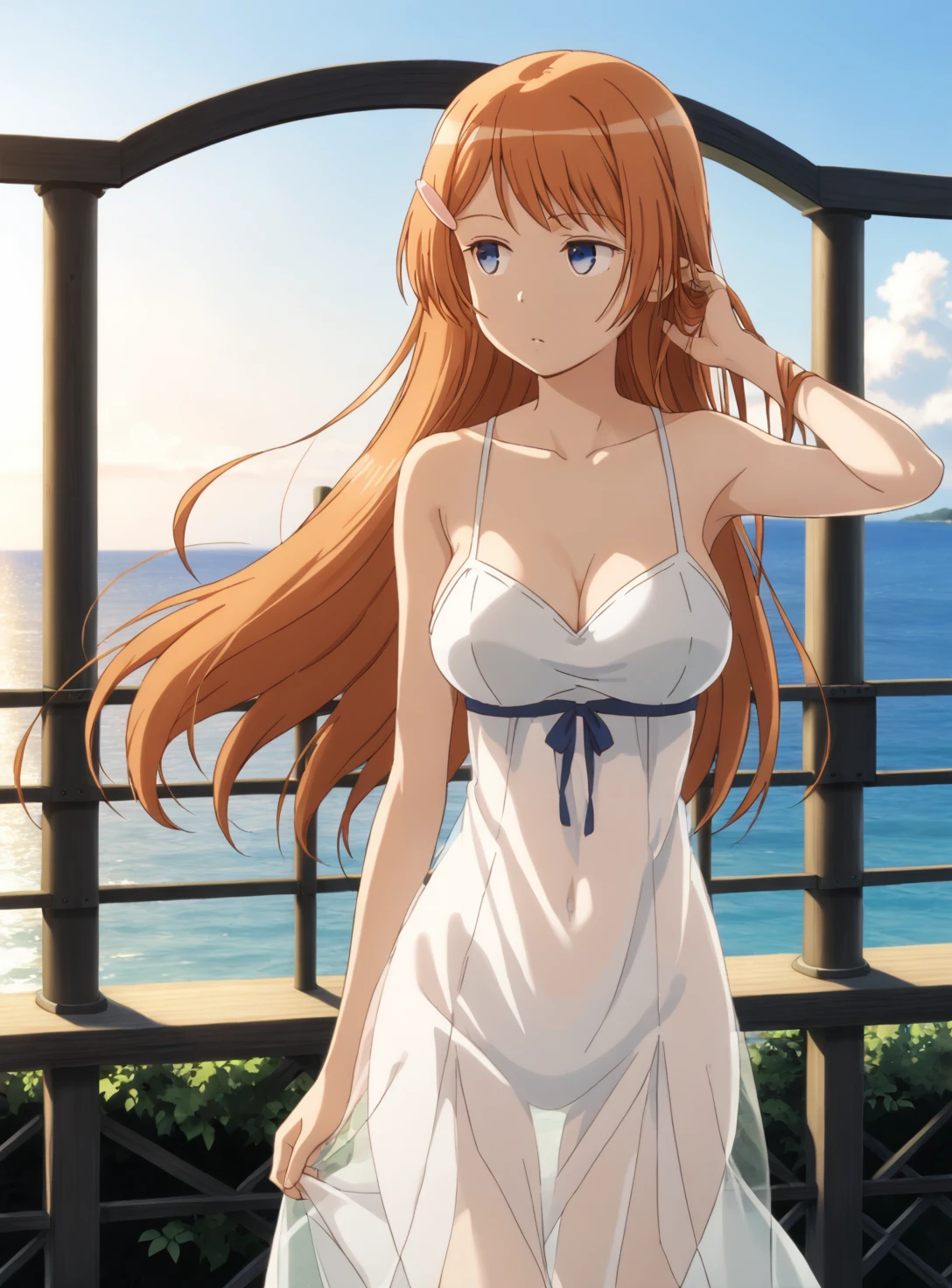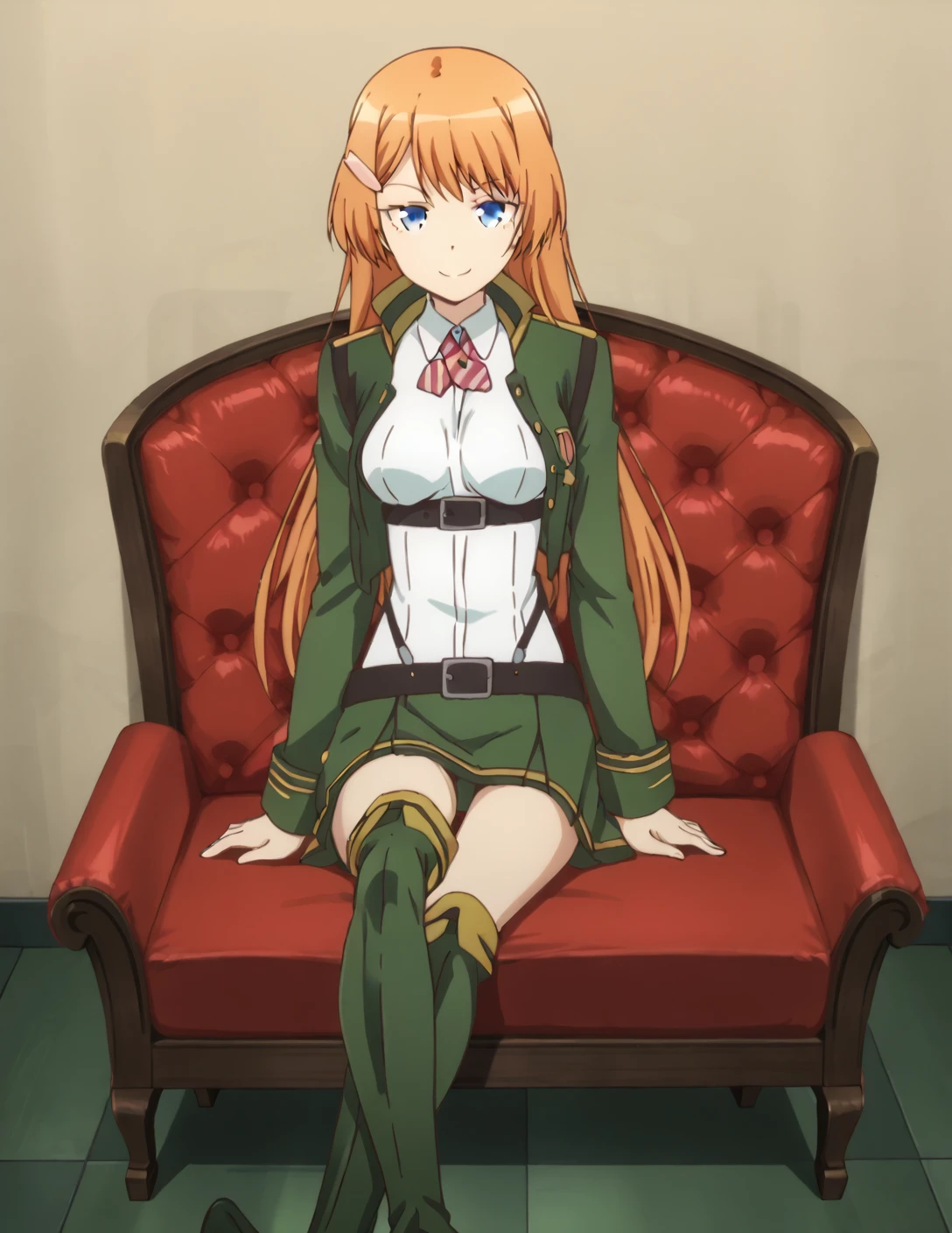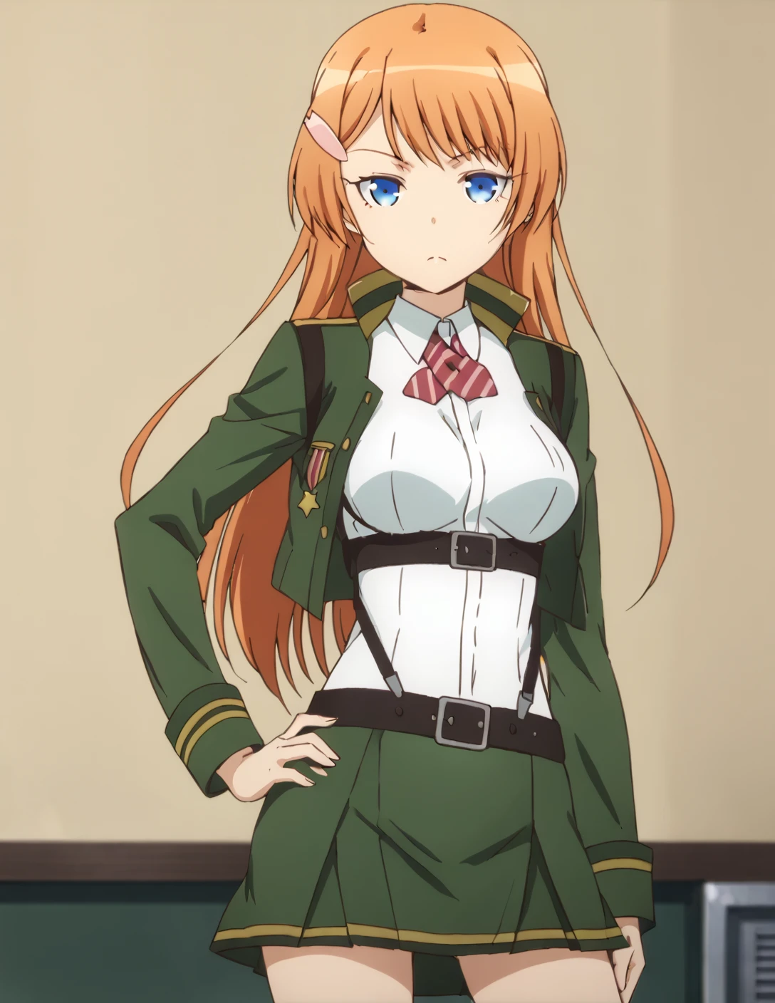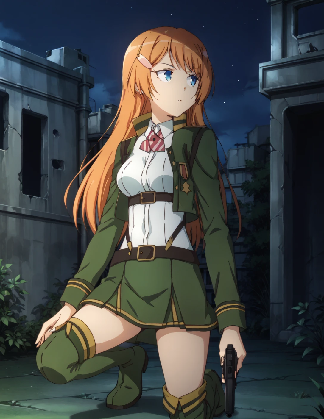 Ootori Ouka, long hair, white shirt, green open jacket, green skirt, green thigh boots,