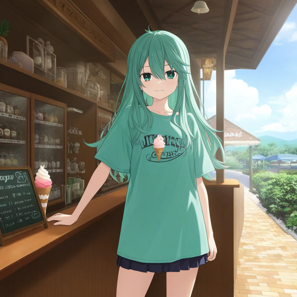 Adult form: kyouno_natsumi_adult, long hair, green eyes, green hair
