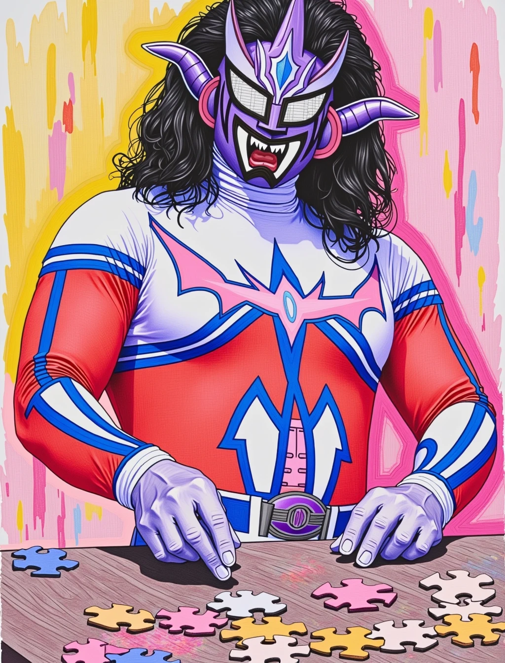 Be creative and go nuts. No specific trigger needed. Use these as starting points, lower strength when combining with other character LoRAs or to make more alien/Tokusatsu/wrestler results (note lack of spaces)