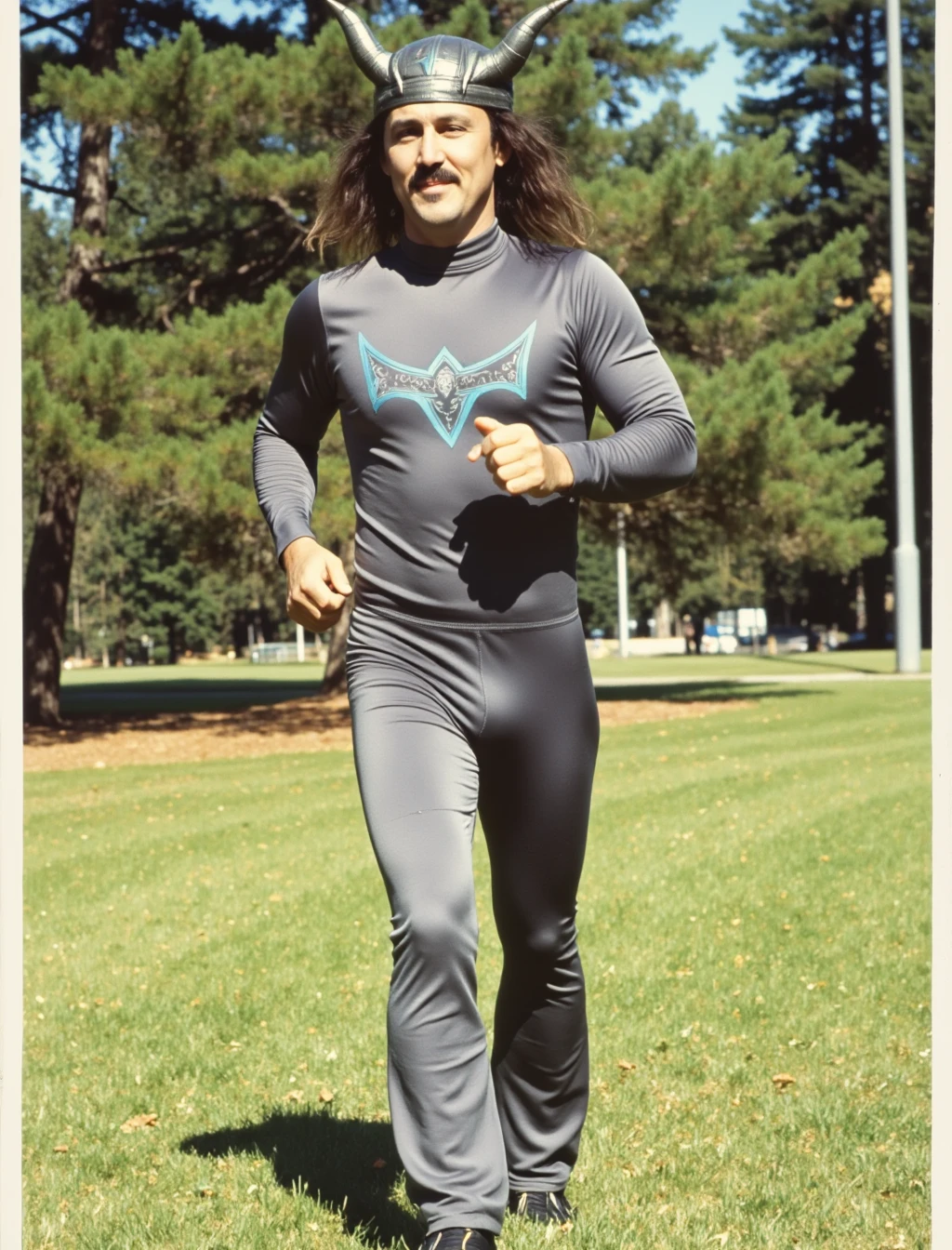 Jushin Liger in a <color> and <color> body suit with matching face shield/guard and long hairFor Kishin Liger (add bald or long hair at beginning if not cooperating)