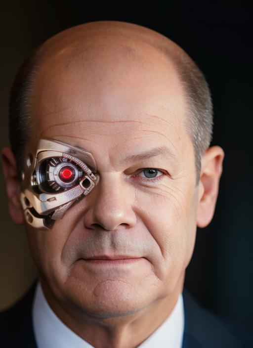 Prompt: (masterpiece, best quality, awards winner) close up portrait Olaf Scholz German Chancellor wearing a black official suit, epic character composition, by ilya kuvshinov, alessio albi, nina masic, sharp focus, natural lighting, subsurface scattering, f2, 35mm, film grain, <lora:olaf:1>