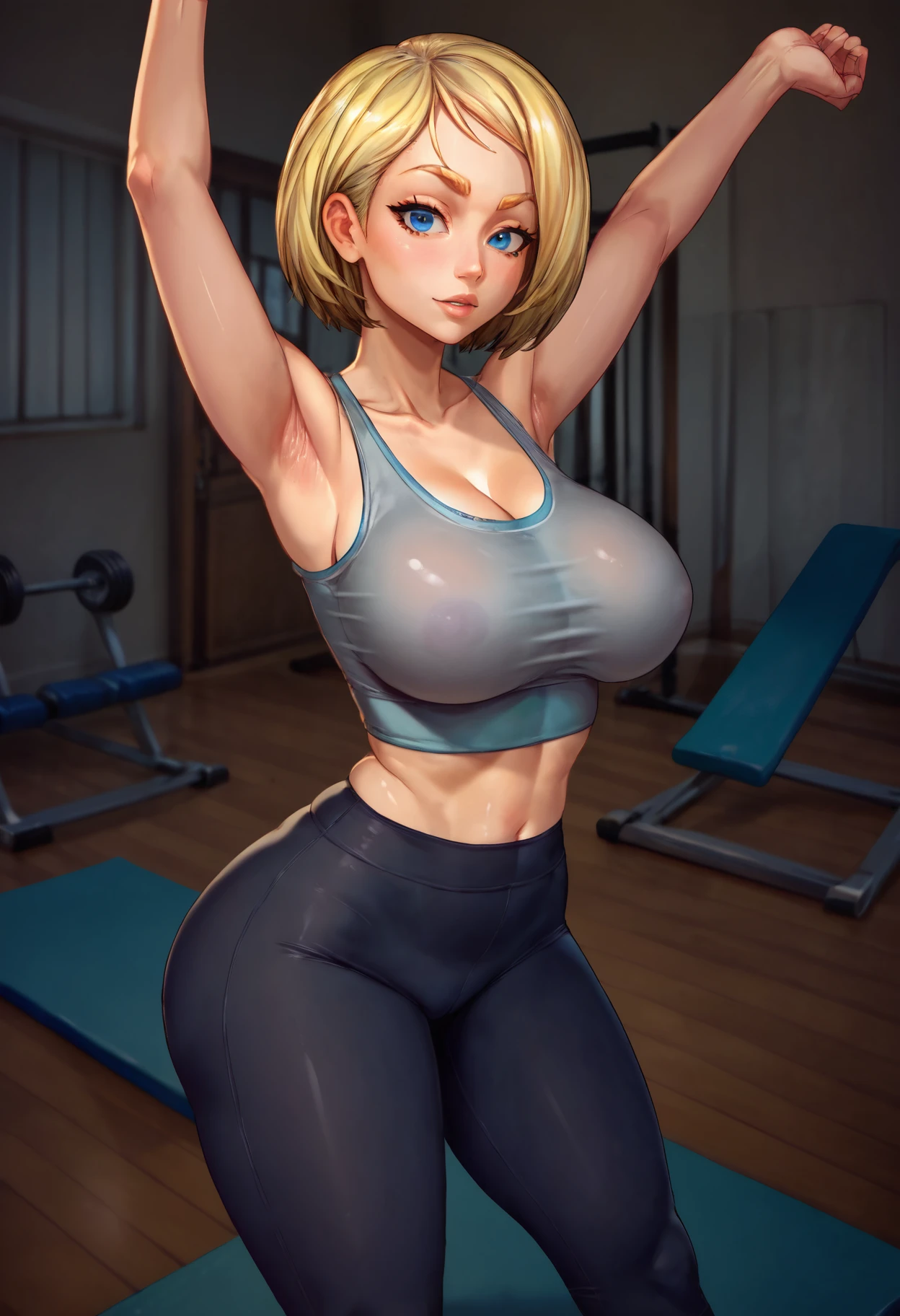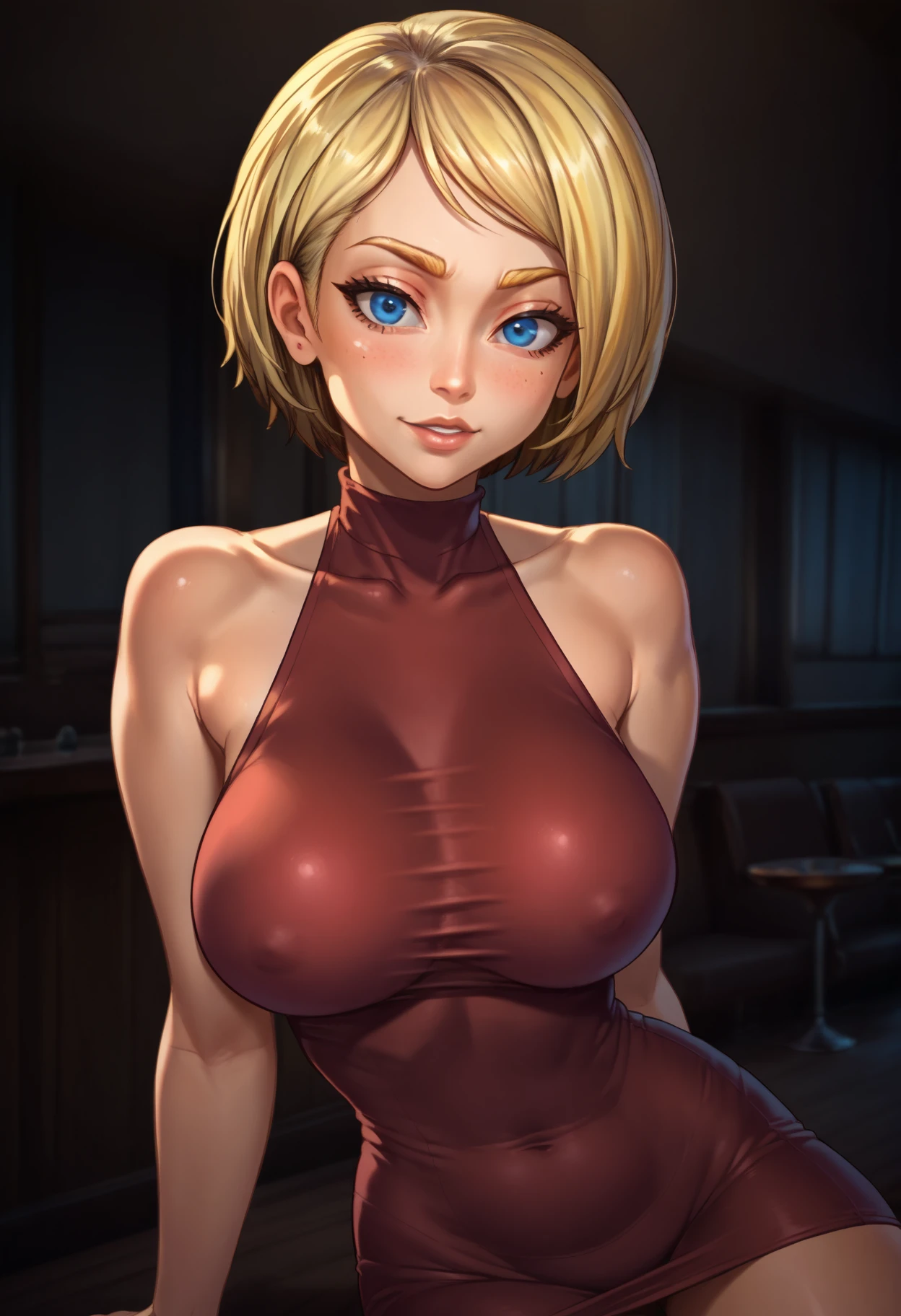 ADD: priscilla, short hair, blonde hair, blue eyes,
