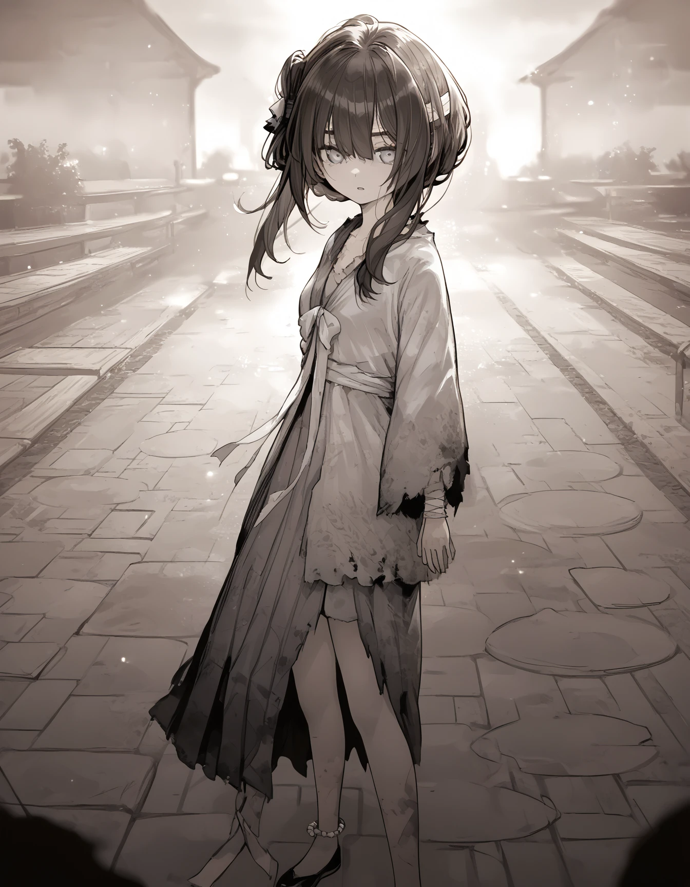 Her post-growth appearance was also included in the dataset, but the learning from her childhood was strong and did not output much. If you get her post-growth appearance, the “torn clothes, torn dress, bandaged arm, bandaged head, bandaged leg” factor works very strongly, so I recommend weakening it in some way.