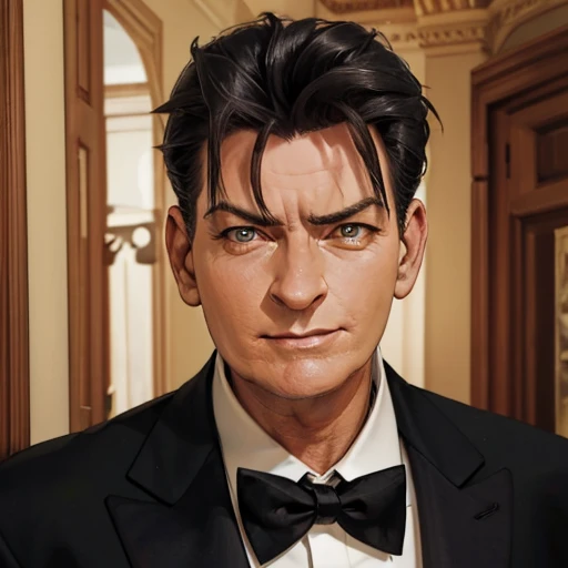 Use trigger word (if necessary) : charliesheen and tokens like "male focus" "brown eyes" "formal" "shirt"