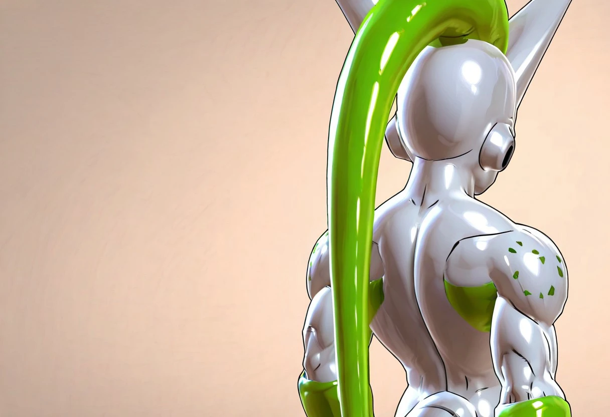 cellbuuzer1, 1boy, male focus, solo, red eyes, black sclera, horns, antenna, green antenna, colored skin