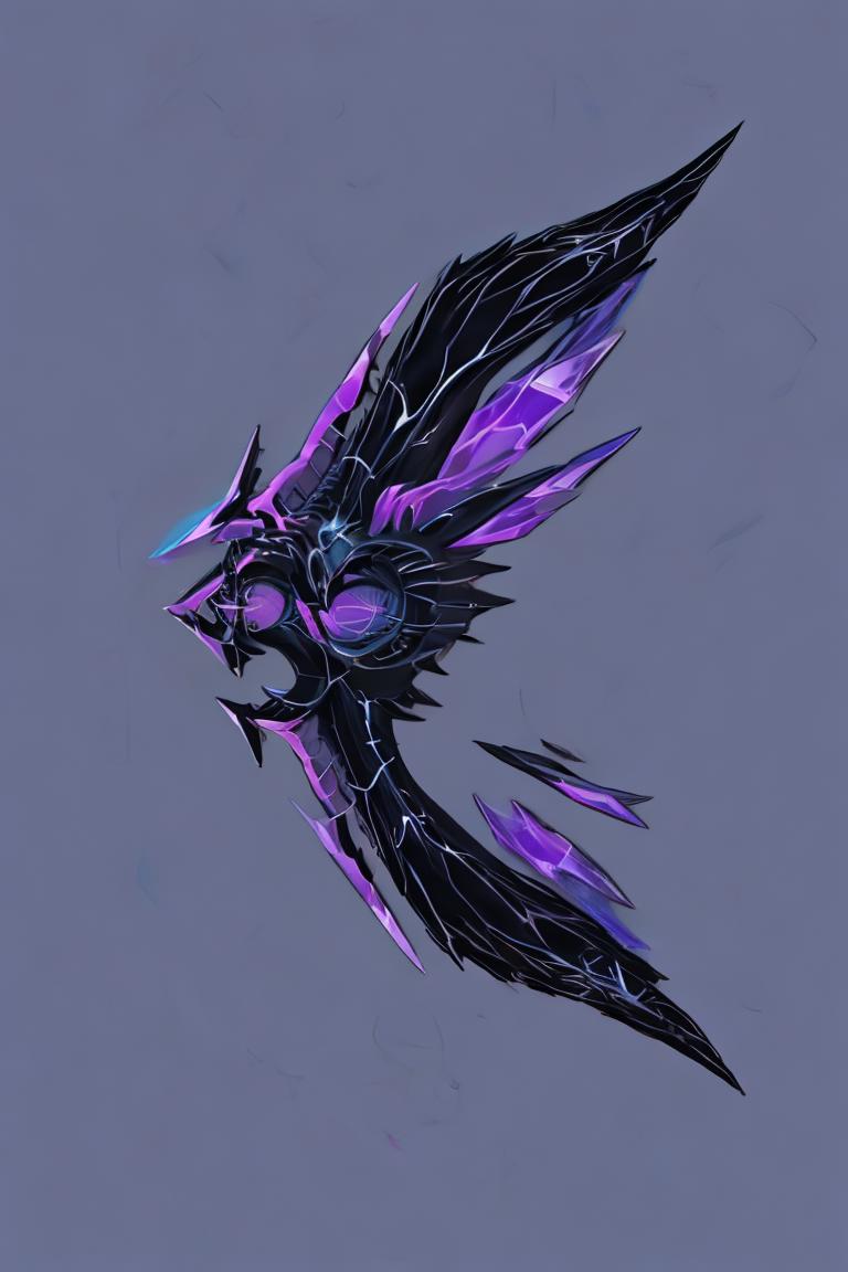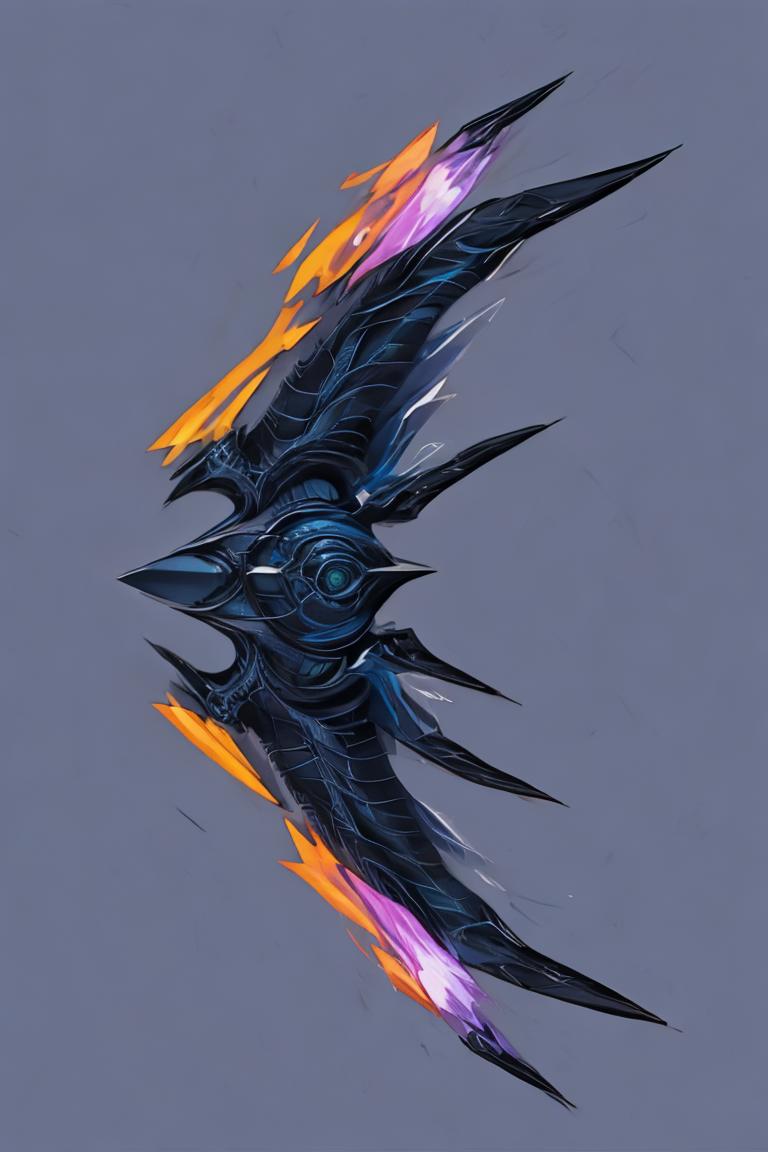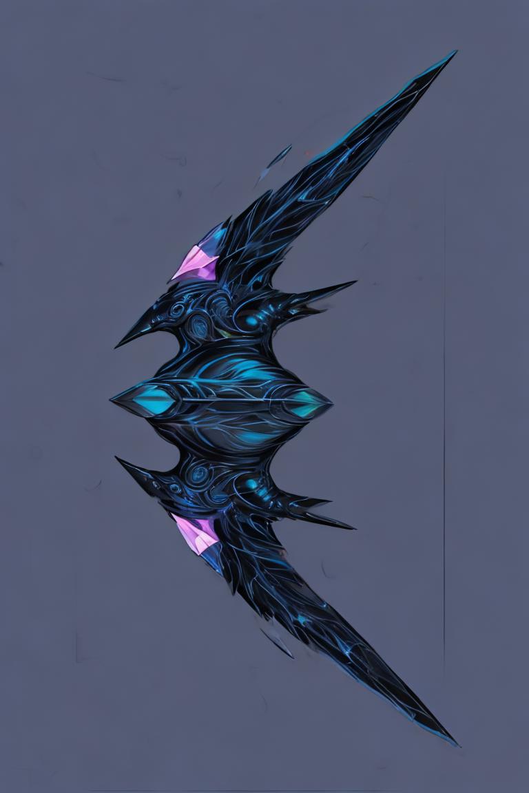 Common tips: CGgameweaponicon dsw, black background, no humans, tail, simple background, horns, weapon, sword,gem, shiny,crystal, weapon, sword, still life, bow \(weapon\), arrow \(projectile\), still life, glowing, monster,wings, monster, from side, dragon, teeth