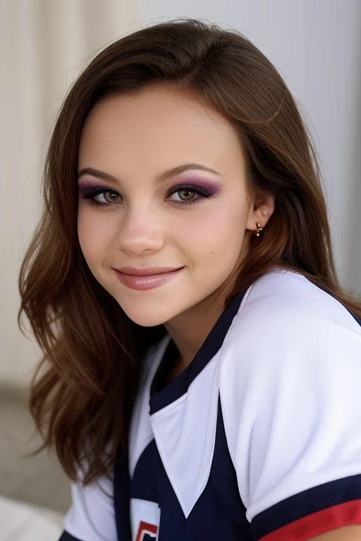 prompt: gauge_,a woman in sports wear holding up her mouth ,1girl,solo,long hair,looking at viewer,skirt,brown hair,navel,twintails,brown eyes,midriff,clothes lift,crop top,sportswear,realistic