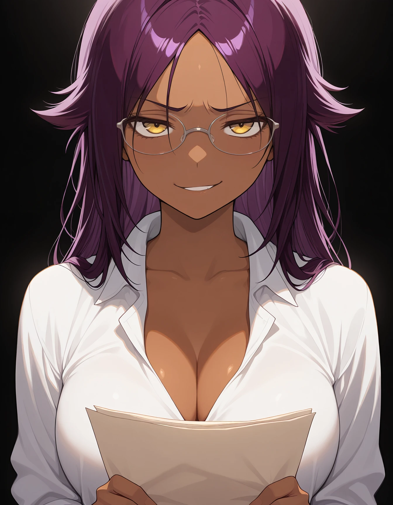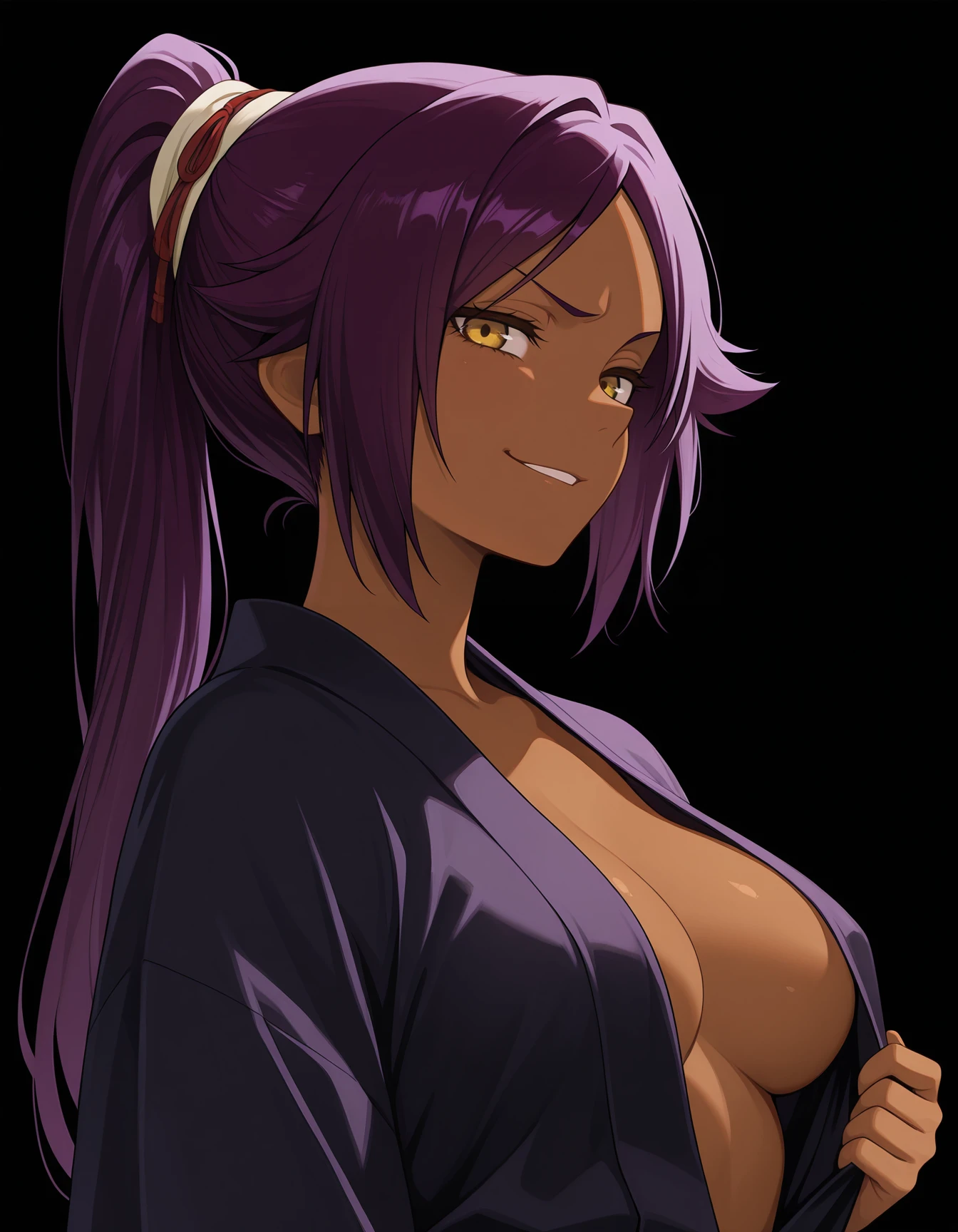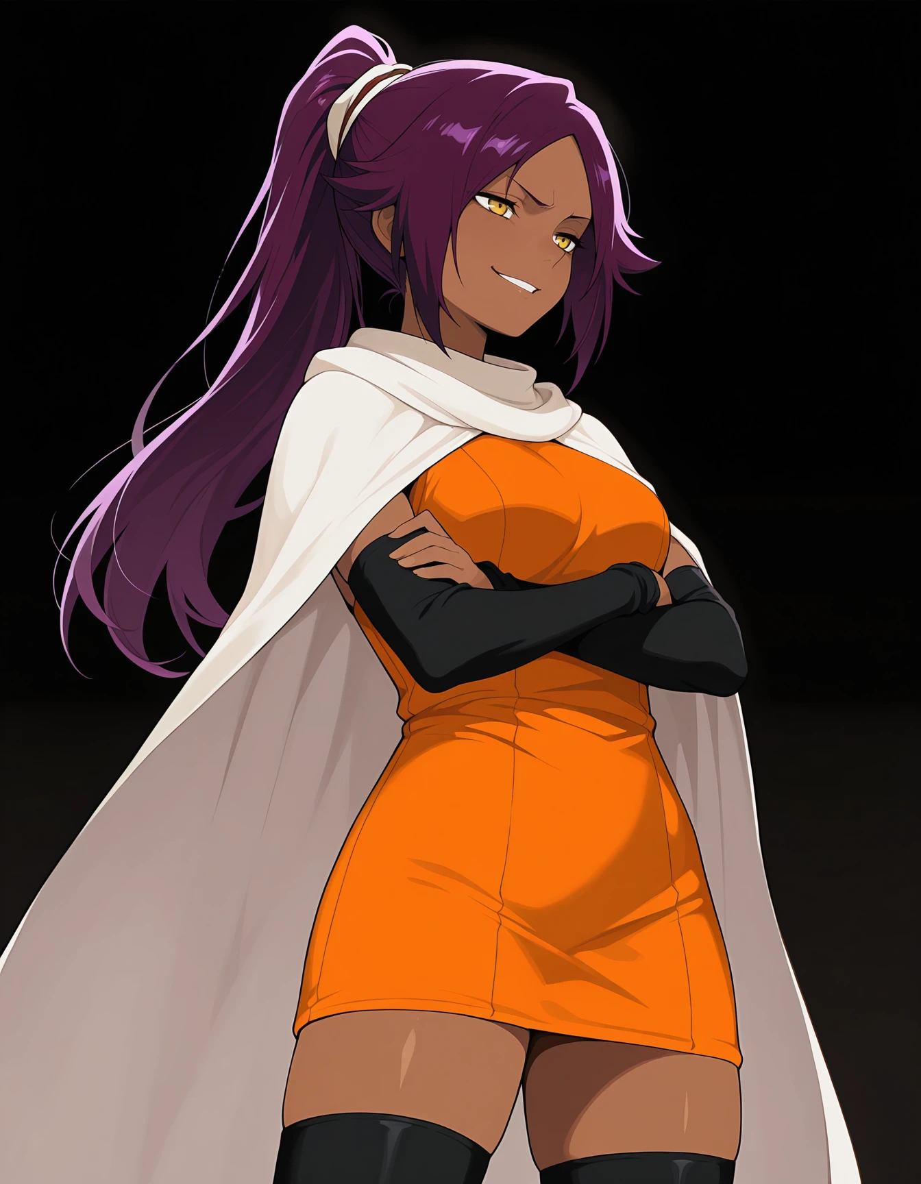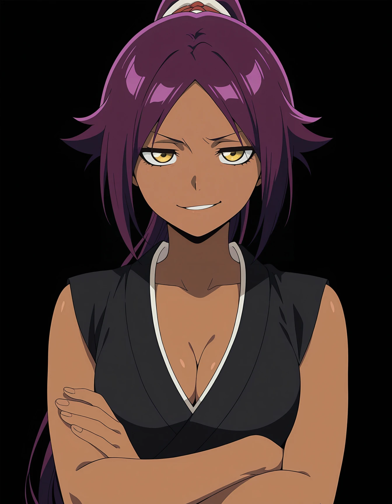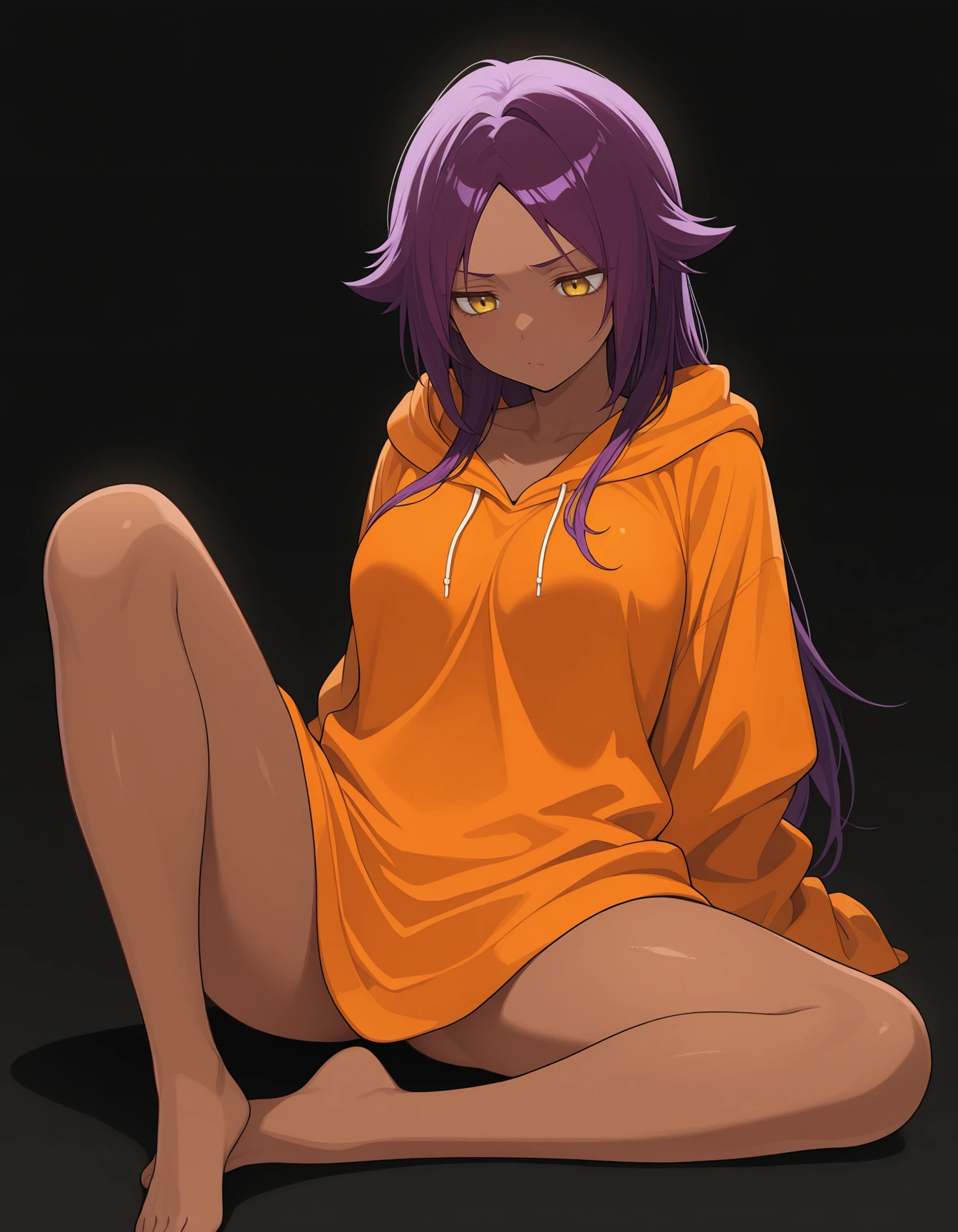 Base: y0ruichi, dark-skinned female, purple hair, long hair, yellow eyes