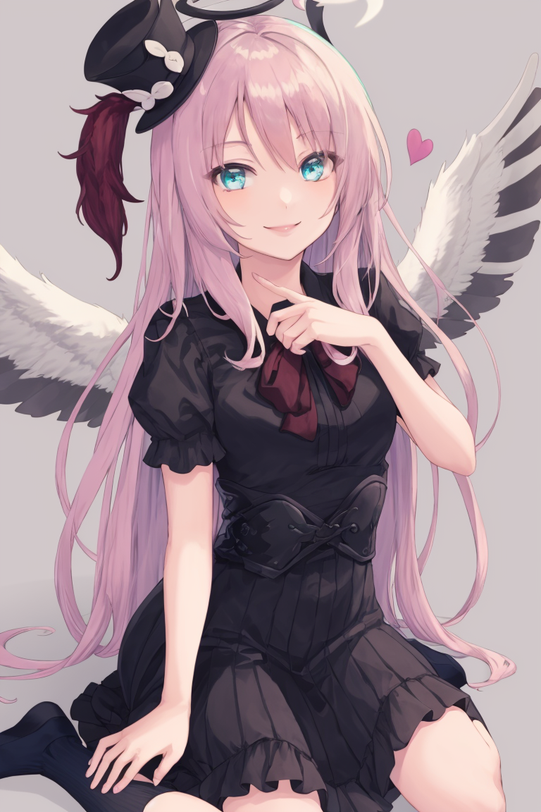 Prompt: ghostrickaom, smile, hat, dress, heart, socks, halo, top hat
